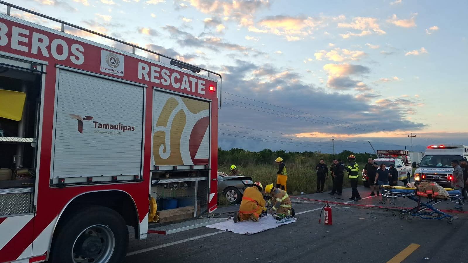 Alertados del accidente carretero, personal de Protección Civil Tamaulipas acudió al lugar para llevar a cabo la extracción vehicular de una persona que se encontraba atrapada al interior de su vehículo luego de participar en un accidente de carretera.
