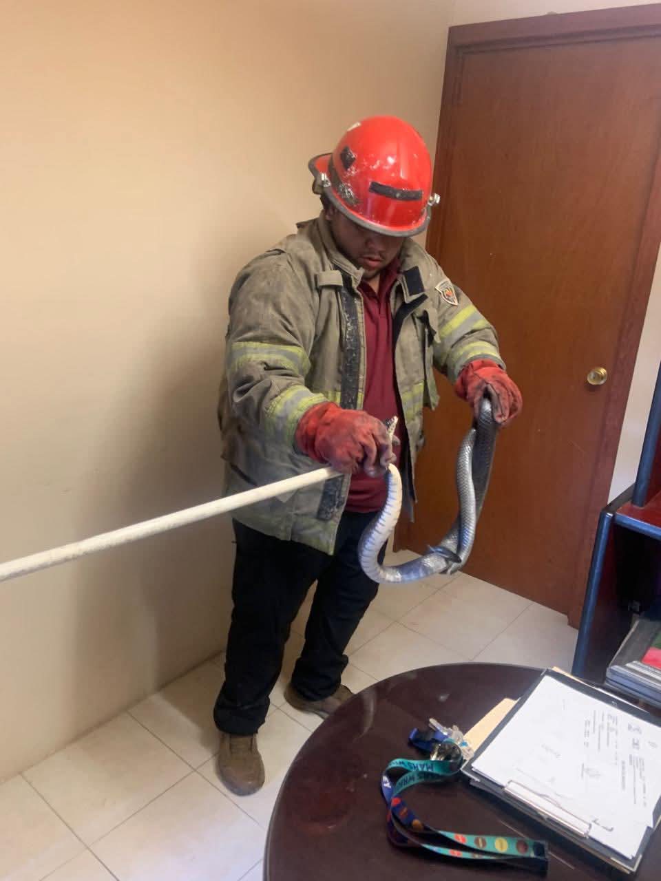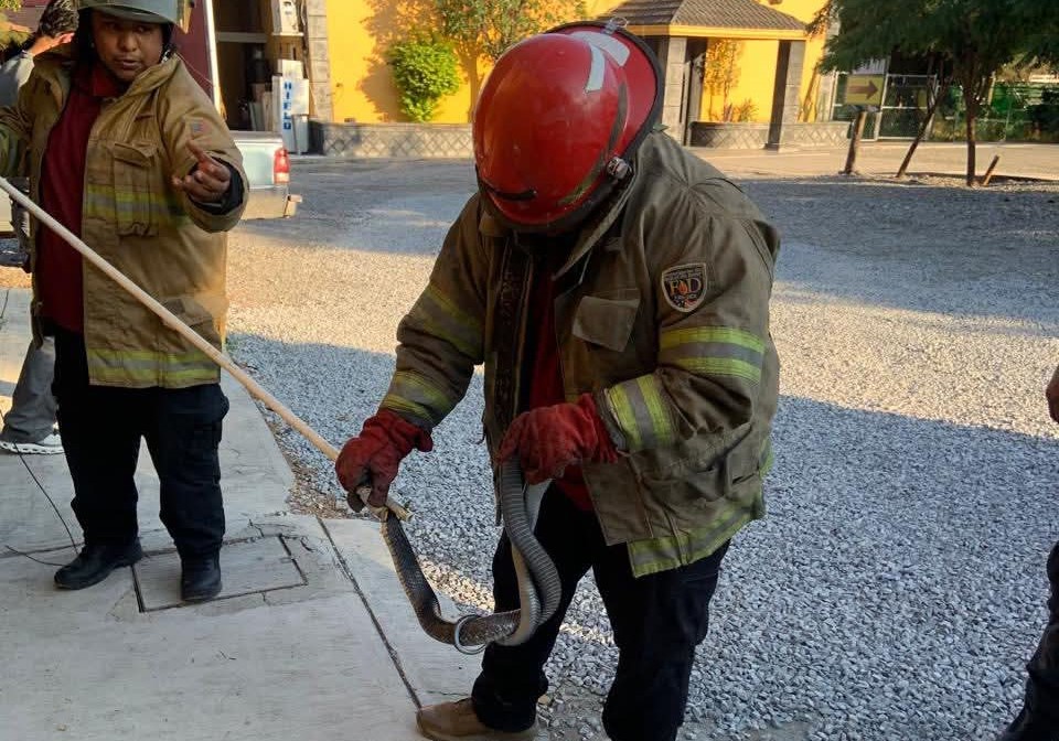 - Esta tarde, elementos del Cuerpo de Bomberos atendieron el reporte de la presencia de una víbora en el Fraccionamiento Almendros.