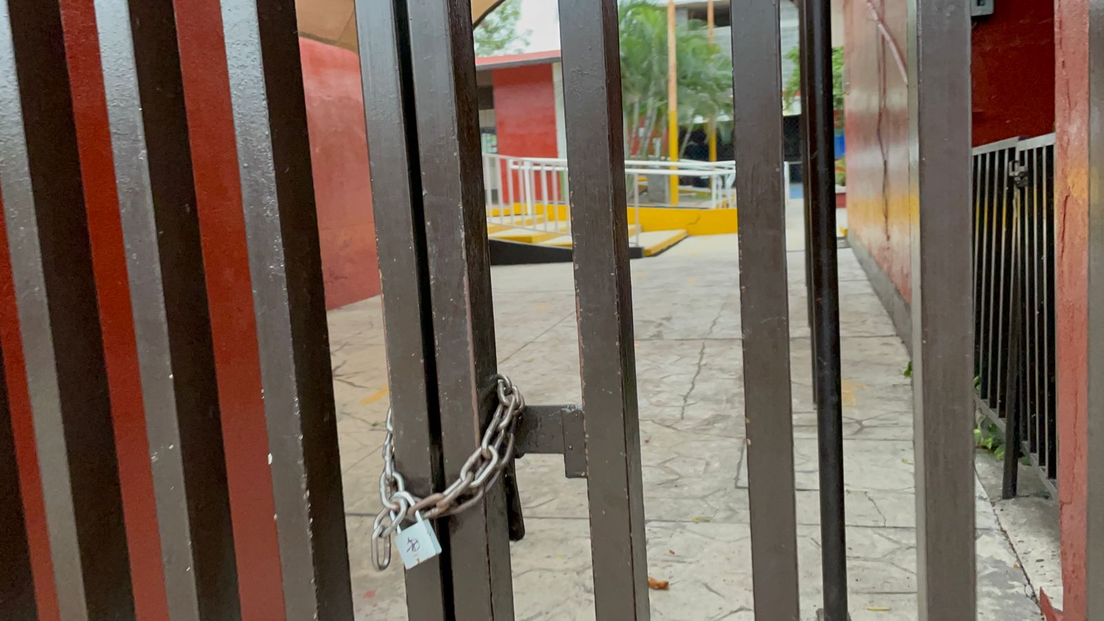 Ciudad Victoria, Tamaulipas (2 de diciembre de 2025). – Para exigir a la Secretaría de Educación el nombramiento de un Director y de cinco maestros titulares en diferentes grados, esta mañana padres y madres de familia cerraron con cadenas y candados las puertas de los accesos de la Escuela Primaria Club de Leones de esta Ciudad Capital.