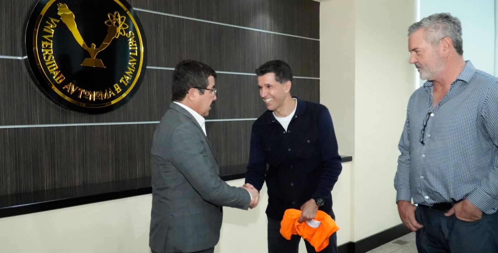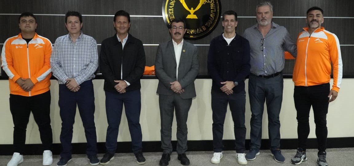Acompañado del presidente del Club Correcaminos Armando Arce Serna, el rector Dámaso Anaya, dio la bienvenida a Gustavo Díaz como nuevo miembro del equipo y de la familia UAT.