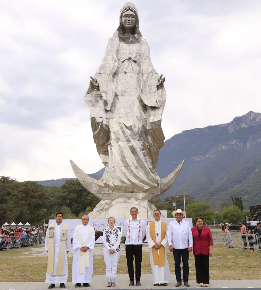 “La nueva imagen de la Virgen, más que una obra, es un símbolo renovado de la identidad espiritual de Tamaulipas; representa la fe de miles de personas, la esperanza de un pueblo noble y la fraternidad que nos permite caminar juntos”, dijo, al cortar el listón inaugural y depositar una ofrenda floral al pie de la obra de más de 30 metros de altura.