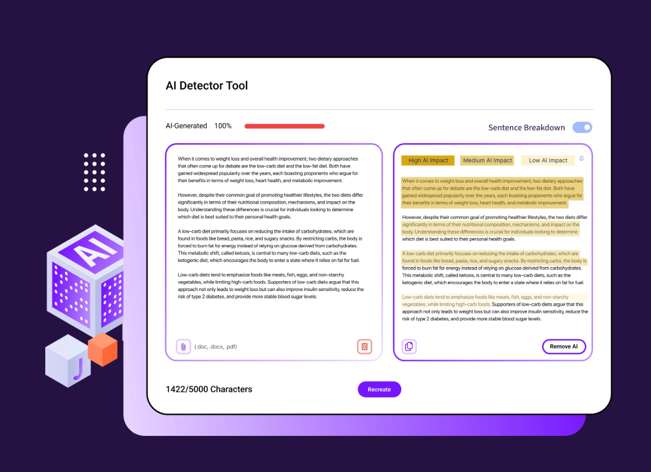 ZeroGPT: muy solicitado entre los autores, es capaz de analizar un gran volumen de texto de una sola vez. Turnitin: el favorito para la verificación de trabajos académicos, combinado con la verificación de plagio.