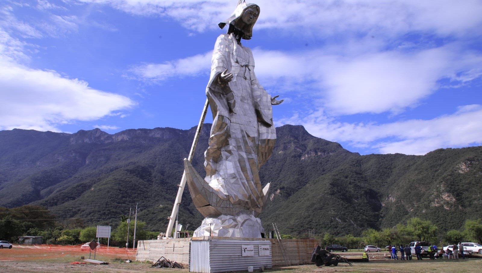 Ejido El Chorrito, Hidalgo, Tamaulipas.– A unos días de la entrega de la monumental Virgen de la Misericordia, programada para el 12 de diciembre, continúan los trabajos de supervisión en la obra ubicada en el Santuario de El Chorrito, en el municipio de Hidalgo.