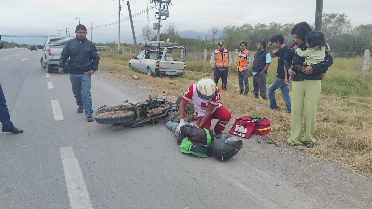 Al lugar acudieron paramédicos de Cruz Roja Mexicana y al ser valorado se determinó que el motociclista resultó con lesiones en la clavícula así como golpes y excoriaciones en varias partes del cuerpo, por lo que fue trasladado a un hospital de esta Ciudad.