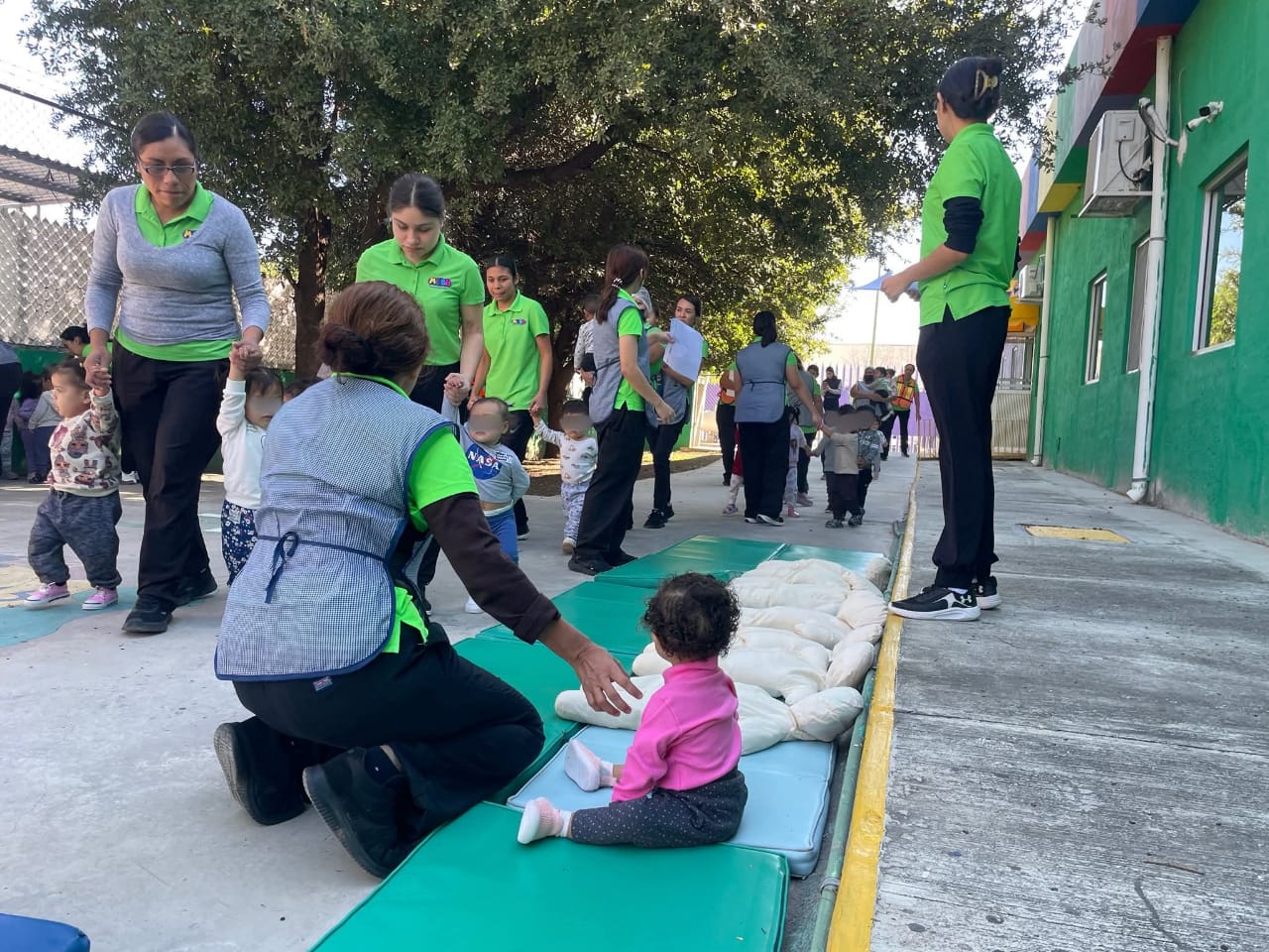 Durante el ejercicio se activaron los protocolos de emergencia y se realizó la evacuación de los menores y del personal hacia zonas seguras, con el objetivo de fortalecer la respuesta ante una situación real.