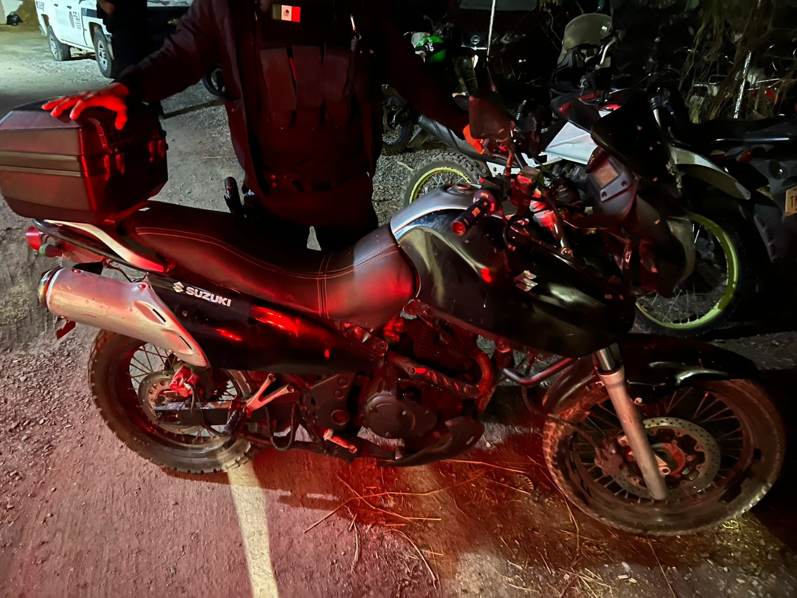 Durante la revisión preventiva, los oficiales marcaron el alto a una motocicleta negra con placas del estado de Tamaulipas.