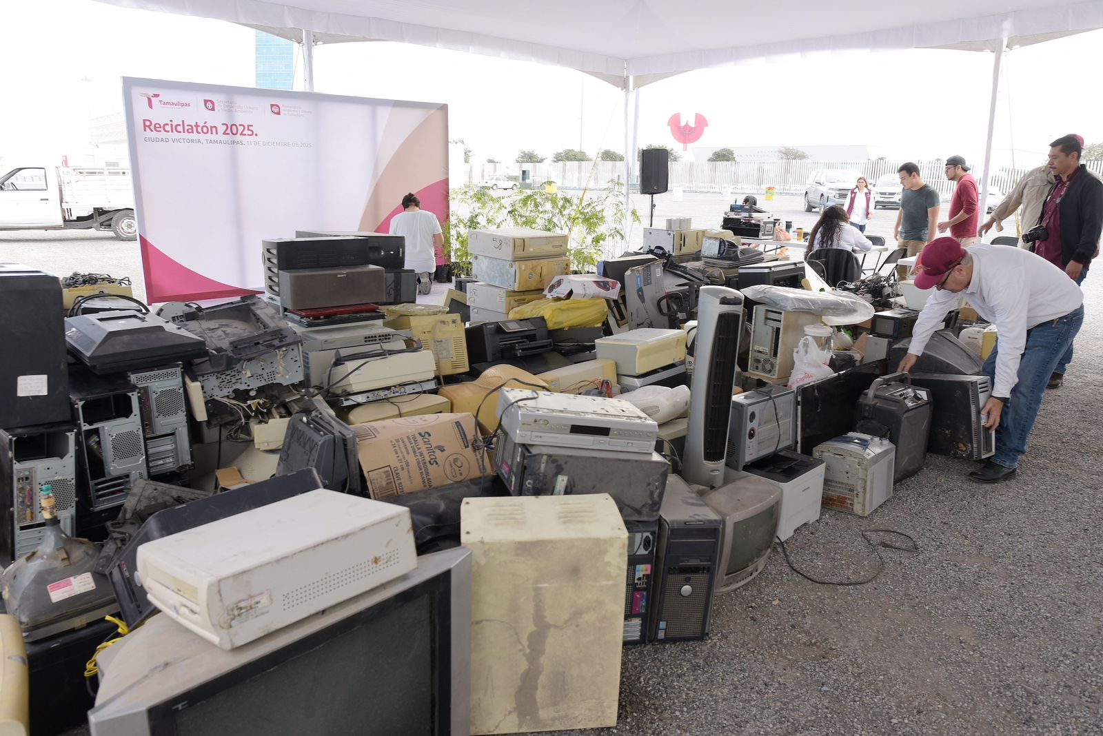 Ciudad Victoria, Tamaulipas.- Con un enfoque social y humano, la ciudadanía de Victoria respondió de manera positiva a la primera jornada del Reciclatón, una iniciativa que promueve el cuidado del entorno y la salud comunitaria al ofrecer una alternativa segura para disponer residuos eléctricos y electrónicos que suelen acumularse en los hogares, recolectando más de 10 toneladas.