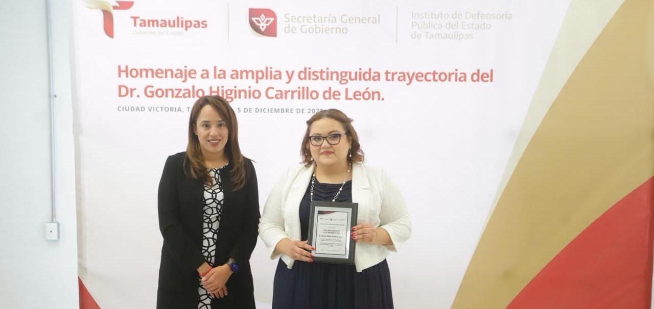 La directora general del Instituto de Defensoría Pública del Estado de Tamaulipas, Roxana Guerrero Galván, expresó que el legado de Carrillo de León constituye un pilar fundamental para la institución.