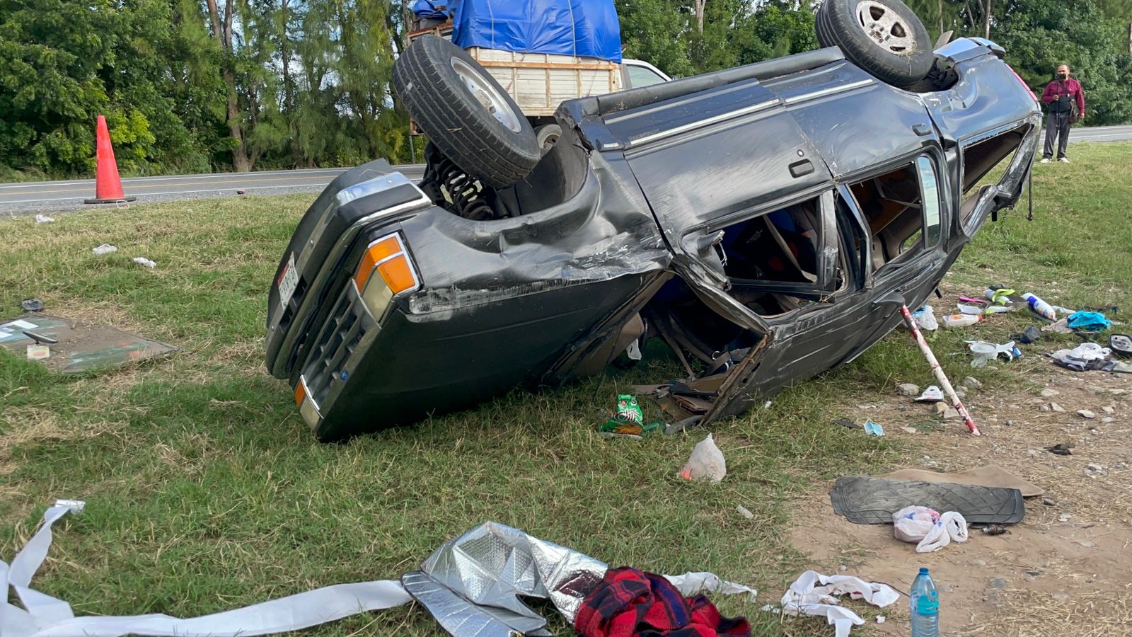 Al circular en el tramo de Matamoros a Soto la Marina, justo en el kilómetro 72, por causas que se desconocen, perdieron el control de la camioneta Ford Explorer y salieron del camino dando varias volteretas.