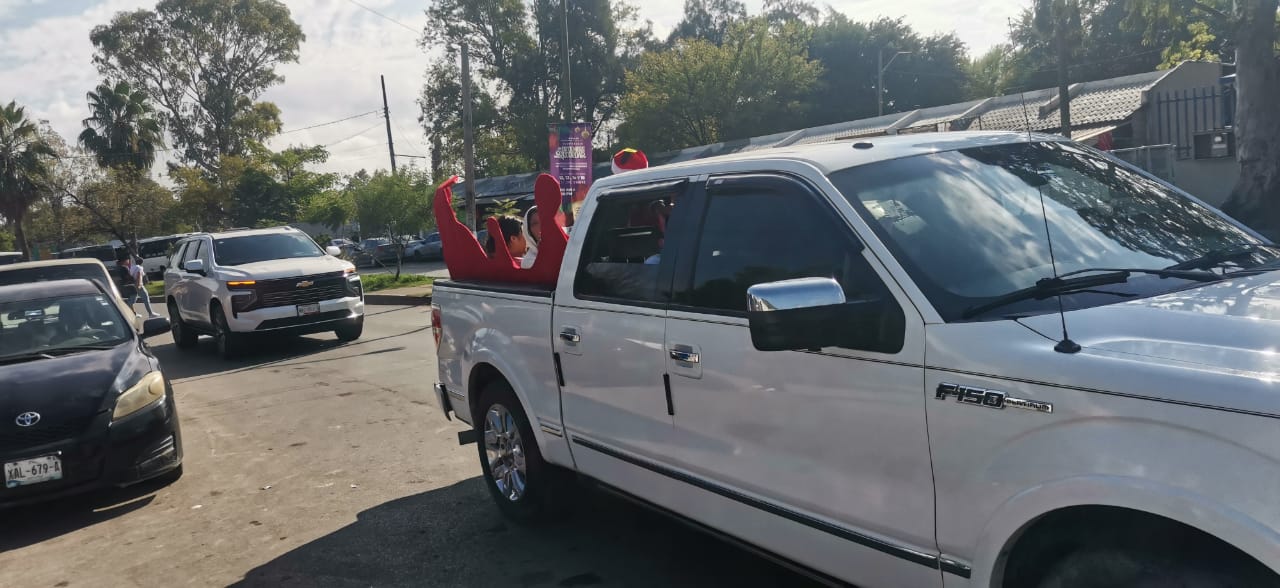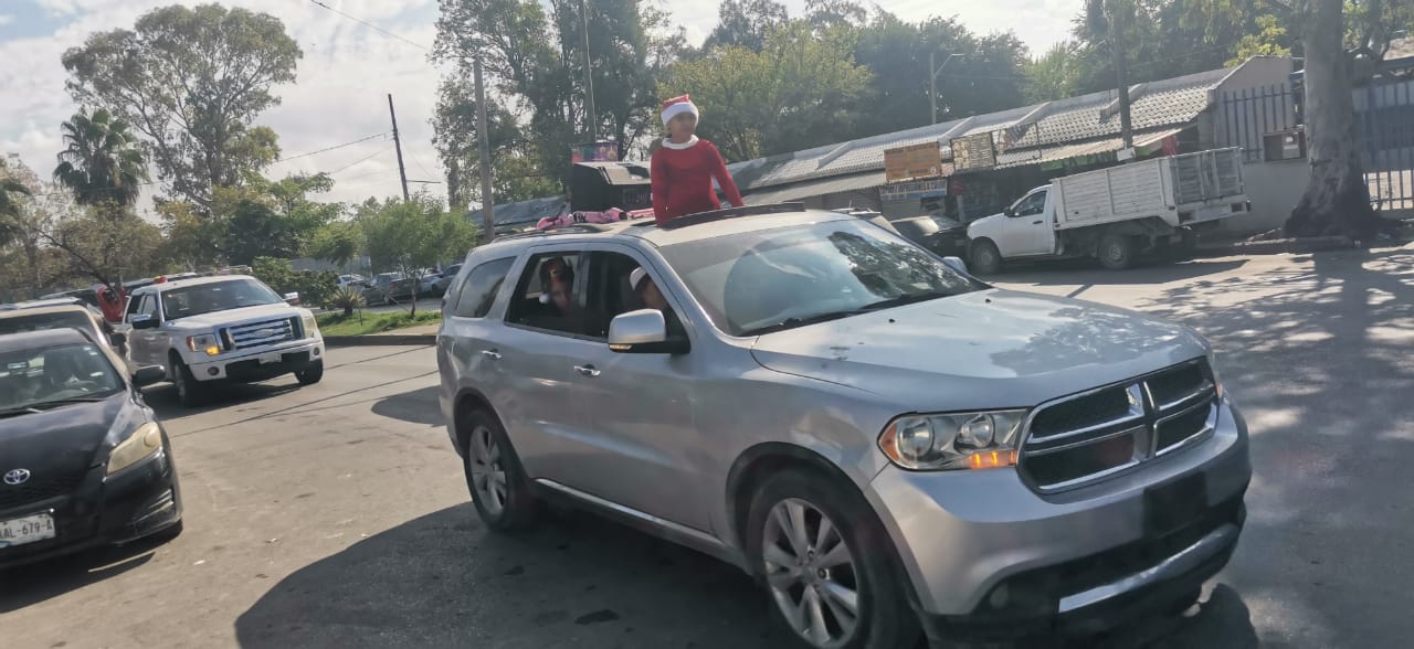 En una caravana de unidades de Tránsito, además de vehículos particulares y con los personajes de Santa Claus, el Grinch y demás alusivos a la época navideña, la caravana de vehículos llegó como primer punto del recorrido a la Clínica Hospital del Instituto Mexicano del Seguro Social de la Loma.