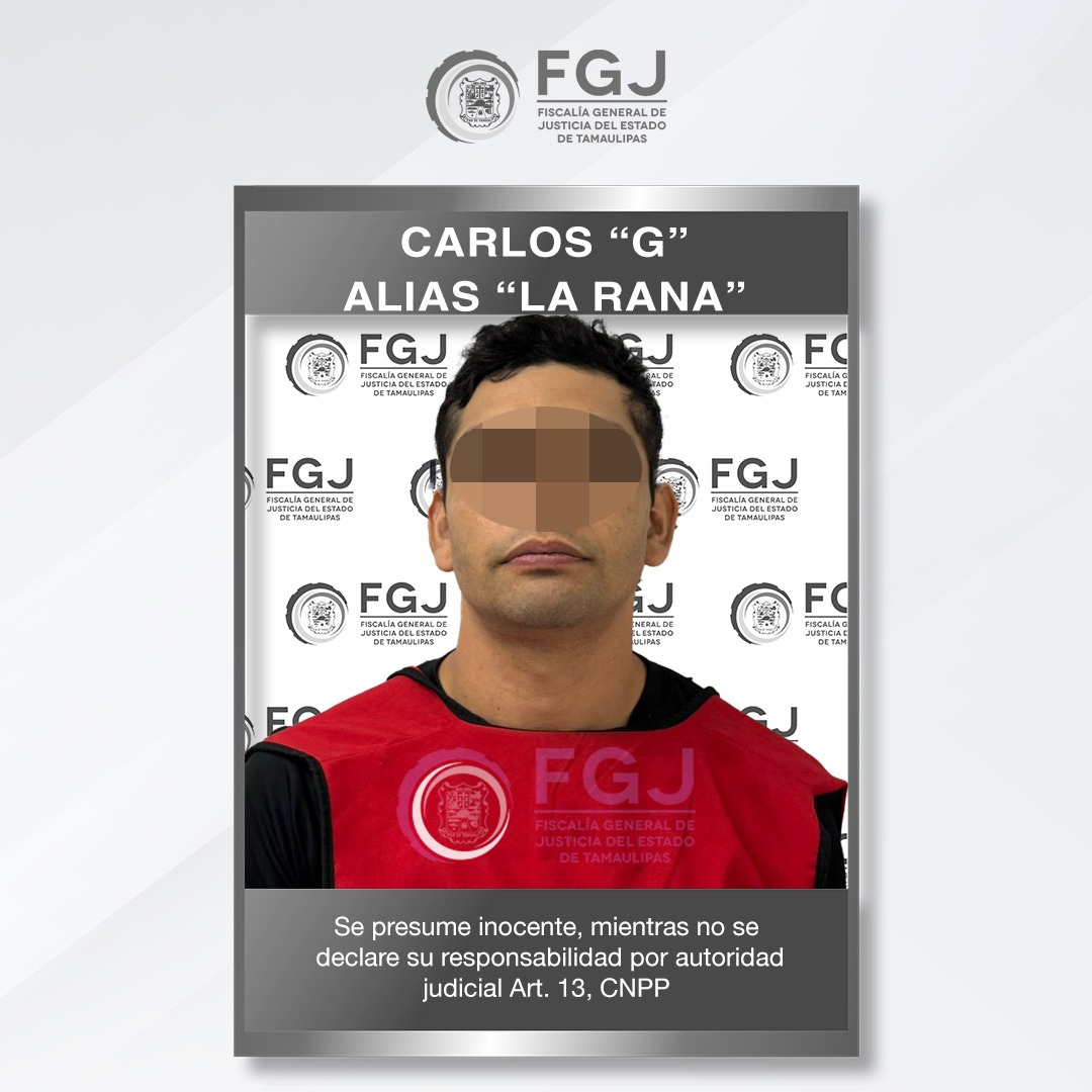 Ciudad Victoria, Tamaulipas (9 de enero de 2026).- Agentes de la Fiscalía General de Justicia del Estado de Tamaulipas cumplimentaron un mandato judicial de captura contra un individuo identificado como Carlos “G”. Al sujeto, conocido bajo el apodo de “La Rana”, se le adjudica el delito de violación tras los hechos ocurridos recientemente.