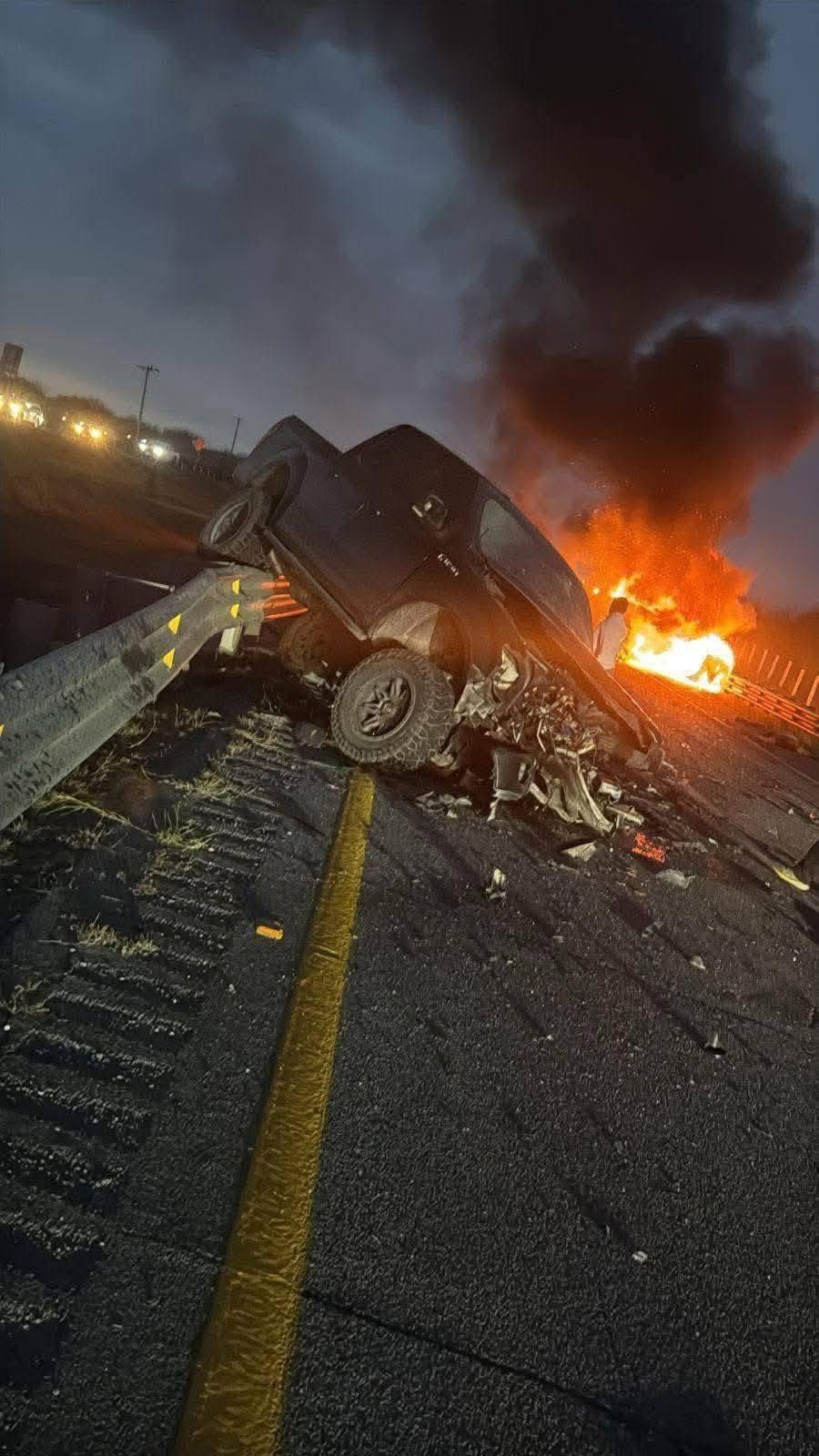 Esta maniobra provocó el impacto directo contra dos unidades, desencadenando un incendio que consumió uno de los vehículos. La brutalidad del accidente resultó en: