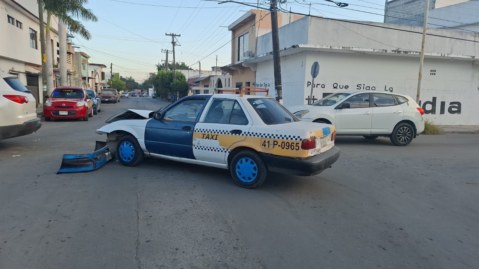Fue en el Cero Matamoros donde se registró el accidente que dejó como saldo cuantiosos daños materiales cuando un automóvil Nissan Tsuru, habilitado como taxi circulaba con preferencia de paso por la calle Cero en sentido de sur a norte.