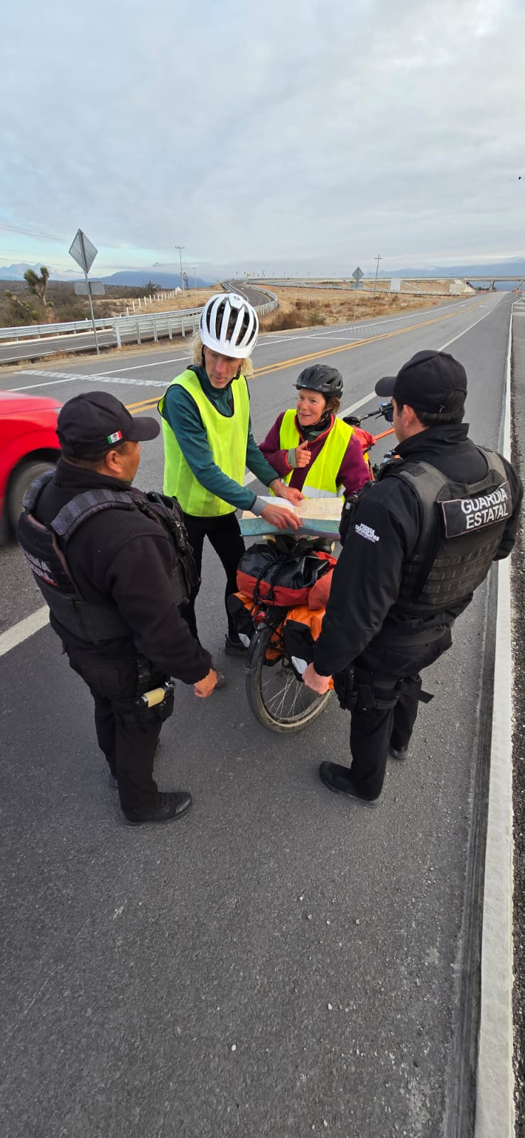 Una pareja de viajeros neerlandeses que pedaleaba con rumbo a Miquihuana recibió asistencia y acompañamiento por parte de elementos de seguridad en el tramo Tula-San Luis Potosí