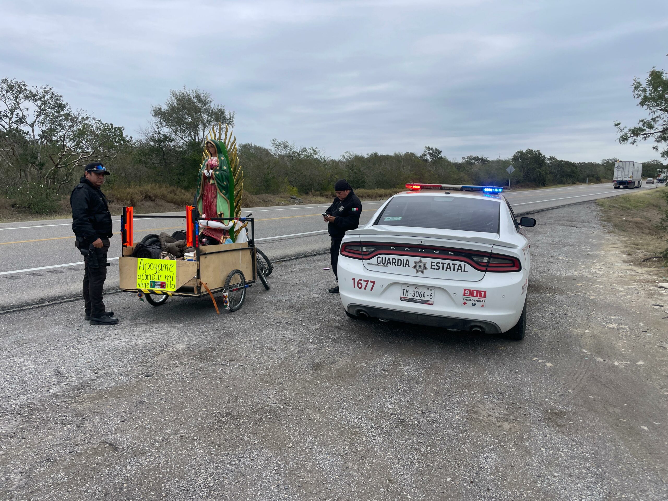 Gonz´’alez, Tamaulipas (18 de enero de 2026).- Un peregrino que recorre Tamaulipas en bicicleta tricarga rumbo a Veracruz tuvo que detener su travesía este viernes luego de presentar agotamiento en plena carretera, tras viajar cientos de kilómetros para cumplir una manda religiosa.