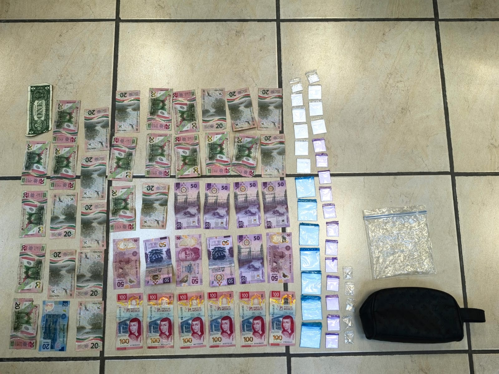 Al inspeccionar el automóvil accidentado, los efectivos de la Guardia Estatal hallaron diversos objetos ilícitos y dinero en efectivo. En el interior se localizaron: