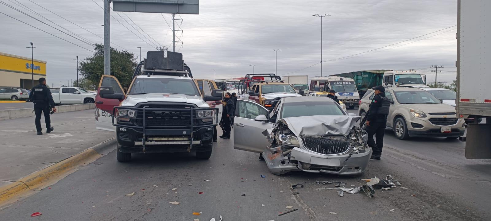 Todo comenzó cuando una unidad motriz intentó escapar al notar la cercanía de las patrullas en la colonia Los Muros. Tras una breve movilización sobre el Libramiento Reynosa-Monterrey, el vehículo sospechoso terminó su trayecto al colisionar contra otros dos automotores.