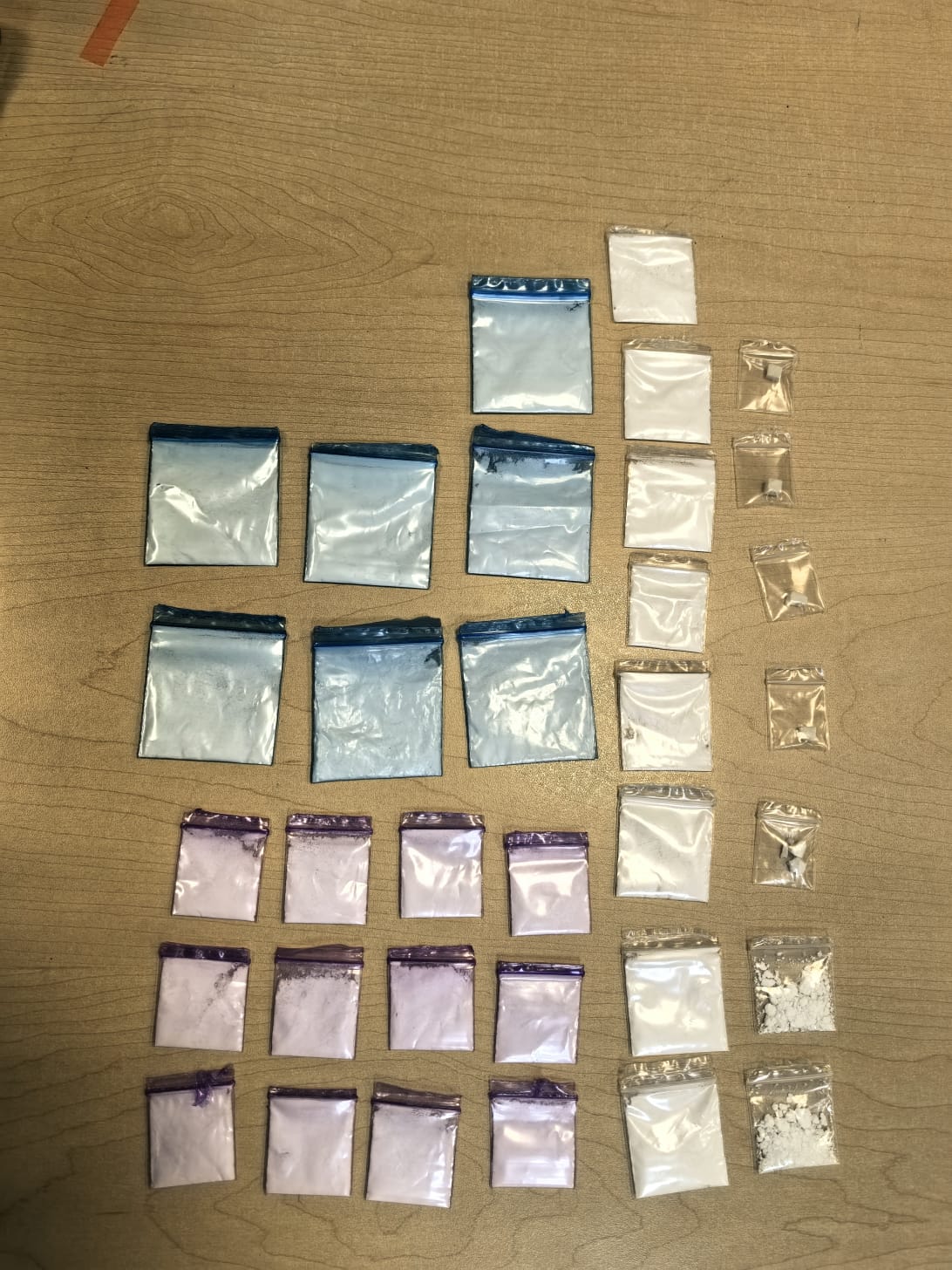 32 envoltorios con polvo blanco, similar a la cocaína.