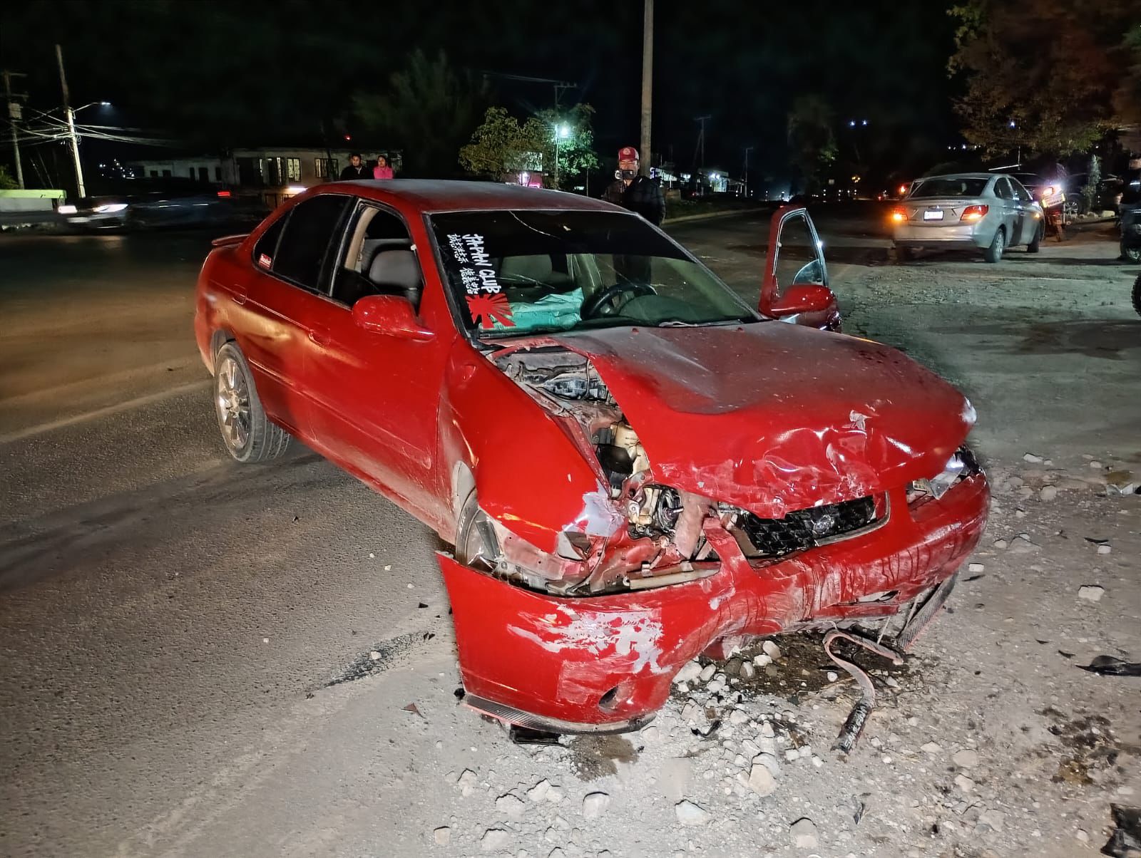 Al hacer la estudiante esa maniobra, viene un automóvil a exceso de velocidad en sentido de norte a sur con preferencia de paso sobre el libramiento y se lleva de encuentro al Chevy Monza.