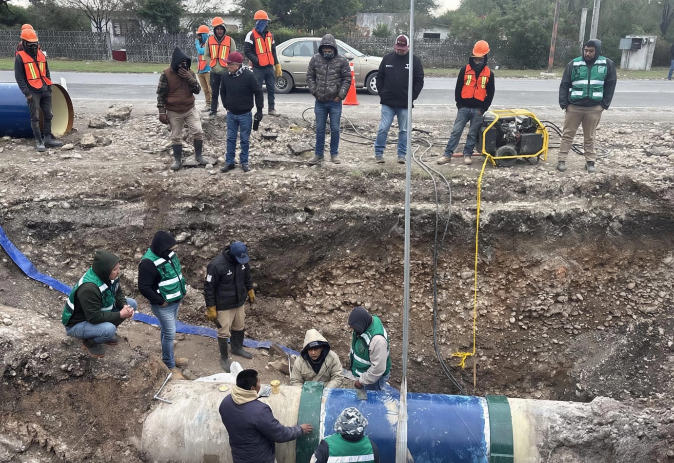 El sitio de la ruptura del acueducto y fuga permanecerá abierto este domingo y lunes para ser cubierto una vez que pase el periodo adicional de prueba de operación del al cien por ciento.