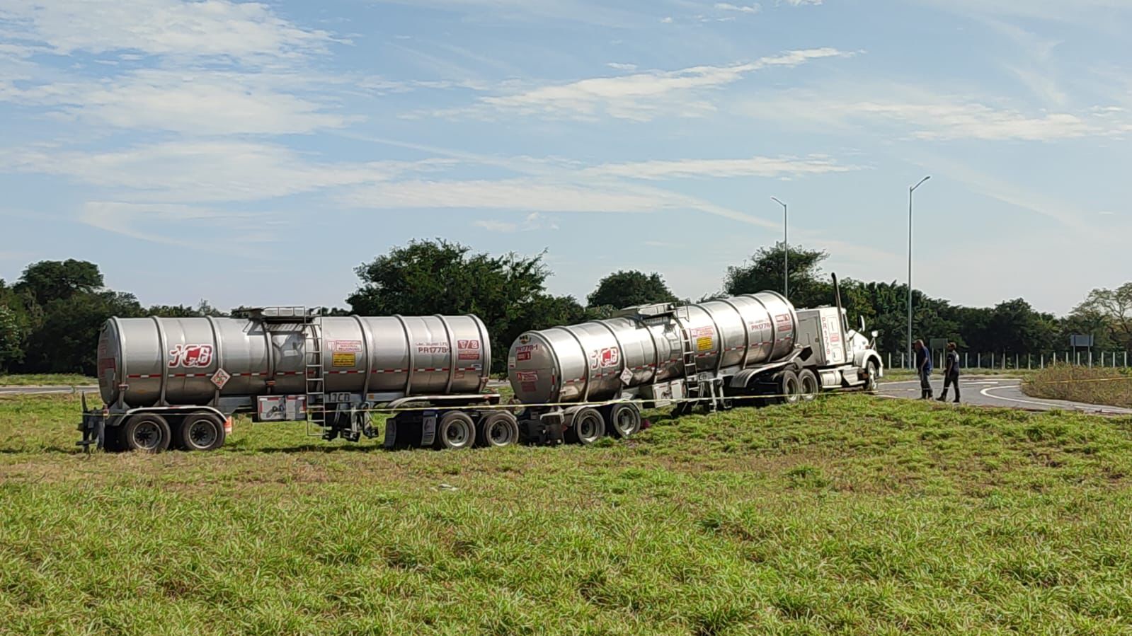 Elementos de Protección Civil Tamaulipas se desplazaron rápidamente al lugar debido a que el primer contenedor de la pipa presentó una fuga de combustible tras el choque. Una motobomba trabajó en la zona para controlar el derrame y prevenir una explosión o un segundo percance en esta transitada ruta.