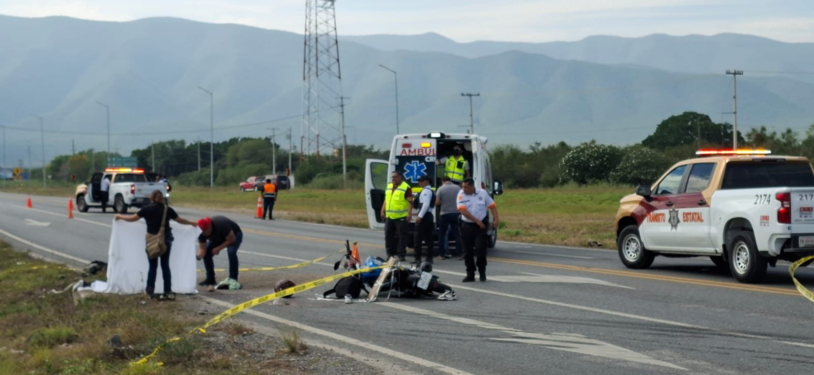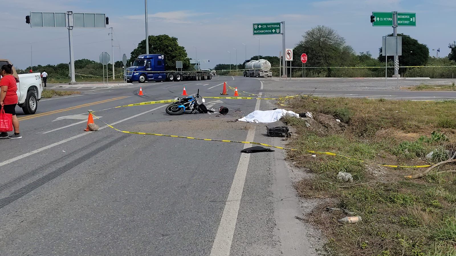 Ciudad Victoria, Tamaulipas (24 de enero de 2026).- La tarde de este sábado, el cruce del Libramiento Naciones Unidas y la carretera Rumbo Nuevo fue escenario de un accidente fatal. Una joven de apenas 18 años, que conducía una motocicleta con placas de Nuevo León, falleció al instante tras colisionar con un tráiler tipo “Full” (doble remolque).
