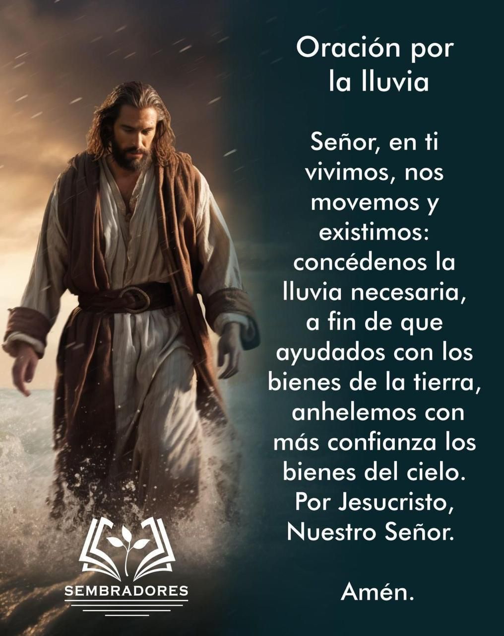 “Dios Padre providente y generoso que cuidas la tierra y la riegas, concédenos la lluvia que tanto esperamos en nuestros municipios y región, perdona nuestras faltas y envía el vital líquido que necesitamos como seres humanos para sobrevivir, te suplicamos que nuestras presas se restauren, que el agua legue a nosotros como bendición del cielo, te lo pedimos por intercesión e Jesucristo nuestro señor, Amén”.