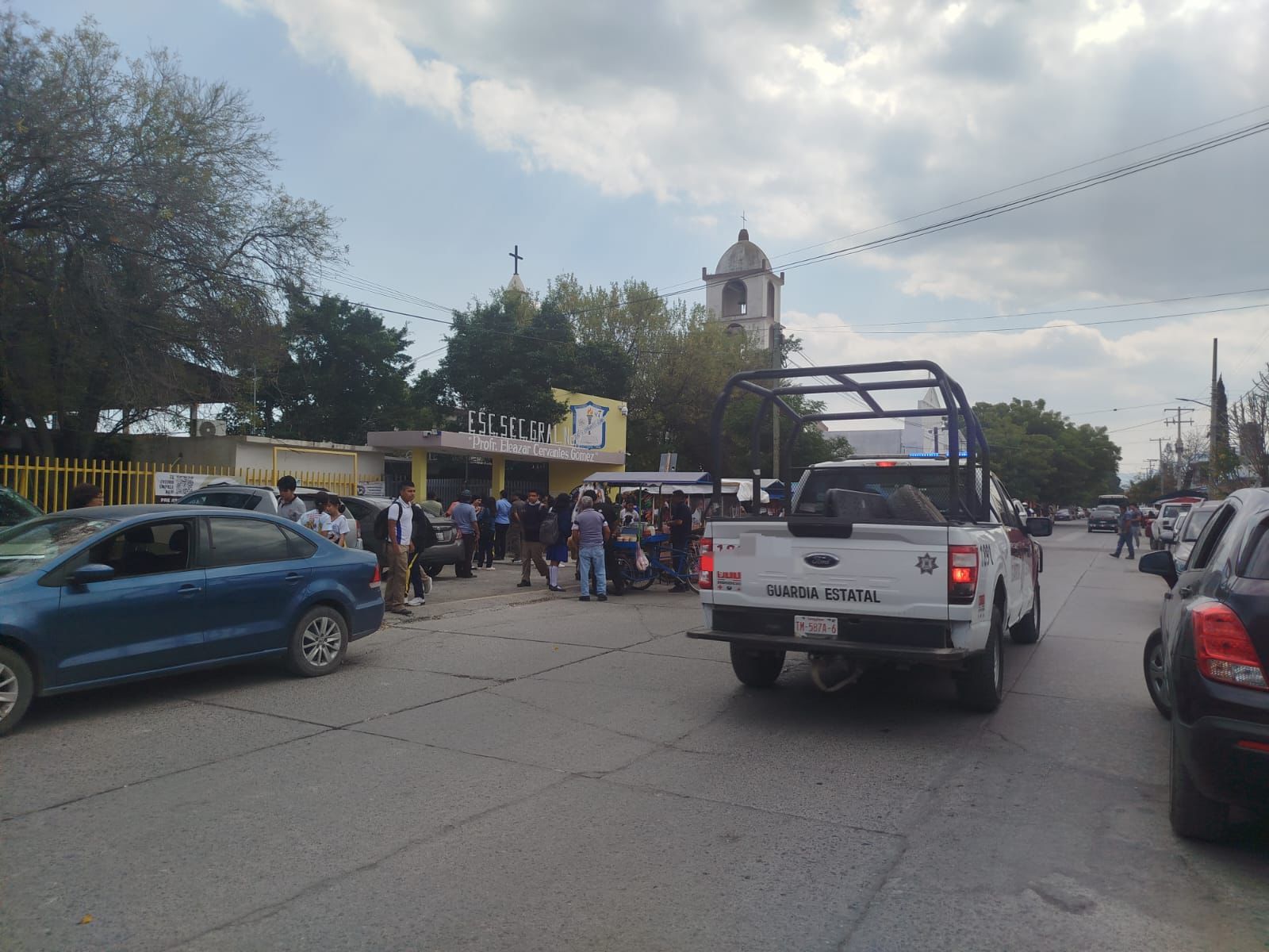 CIUDAD VICTORIA, TAMAULIPAS. – Personal de la Guardia Estatal de Género atendió un reporte de una presunta riña entre estudiantes en las inmediaciones de la Escuela Secundaria General Número 7 “Profesor Eleazar Cervantes Gómez”, en Ciudad Victoria.