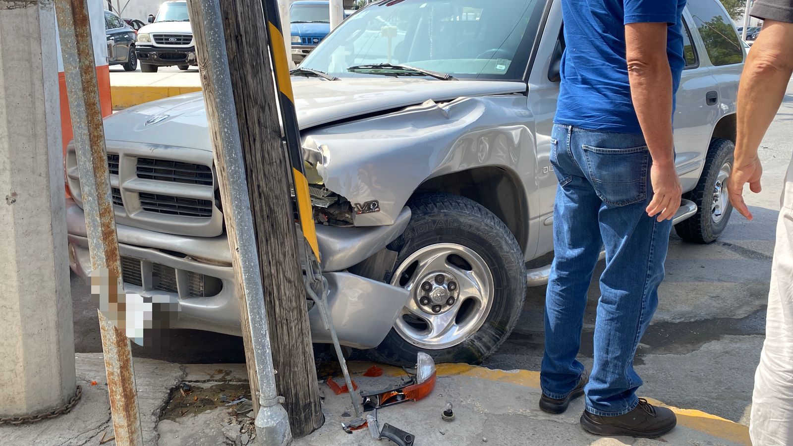 La camioneta Durango, el ser impactado por el costado derecho, salió proyectada y se estrelló contra un poste de madera.