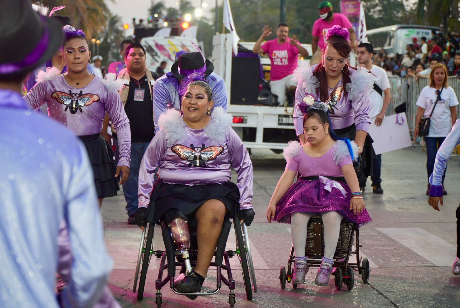 Batucada, colores, disfraces, vivas, gritos, coreografías, energía pura, lo mismo de niñas, niños y adultos que gente con distintas capacidades, una inclusión total.