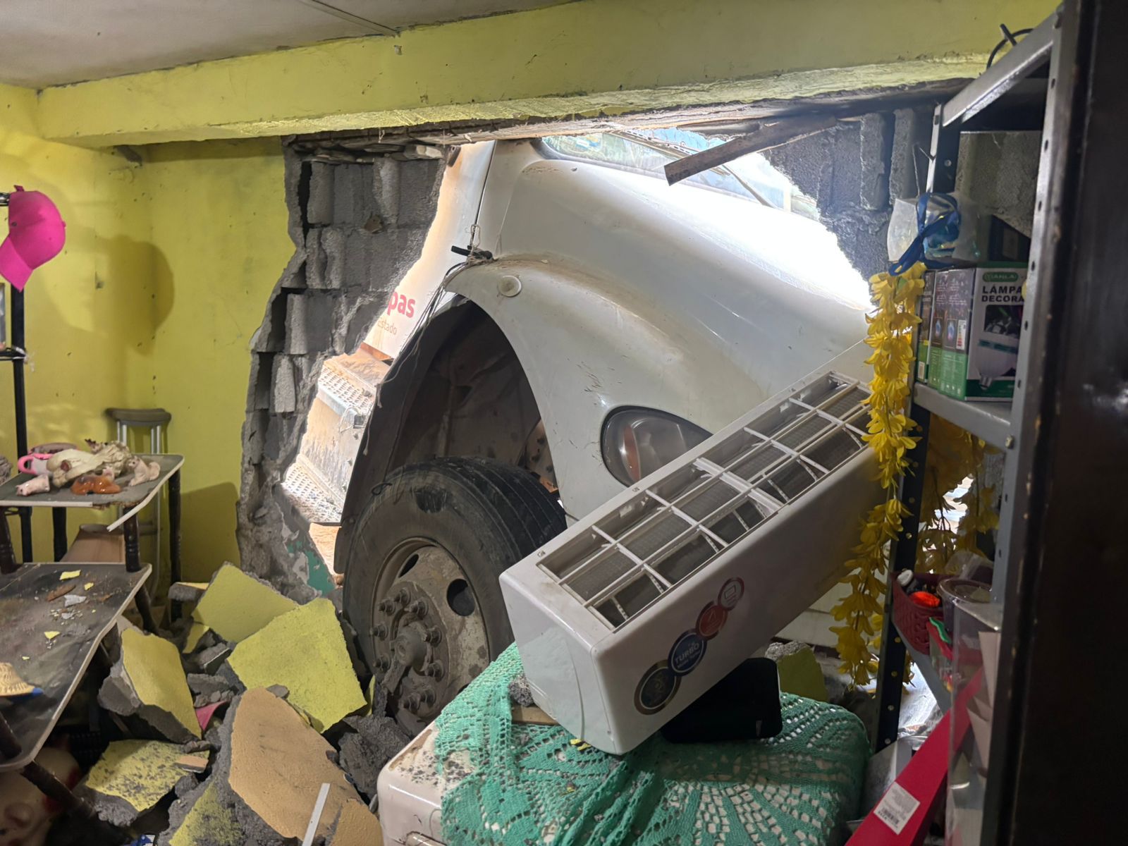 De acuerdo con los primeros reportes, la unidad circulaba por una pendiente pronunciada cuando el operador intentó detener la marcha; sin embargo, el sistema de frenos no respondió. Ante la situación, el conductor desvió la trayectoria hacia su lado derecho, pero el vehículo terminó incrustado contra la pared del inmueble, ocasionando daños materiales.