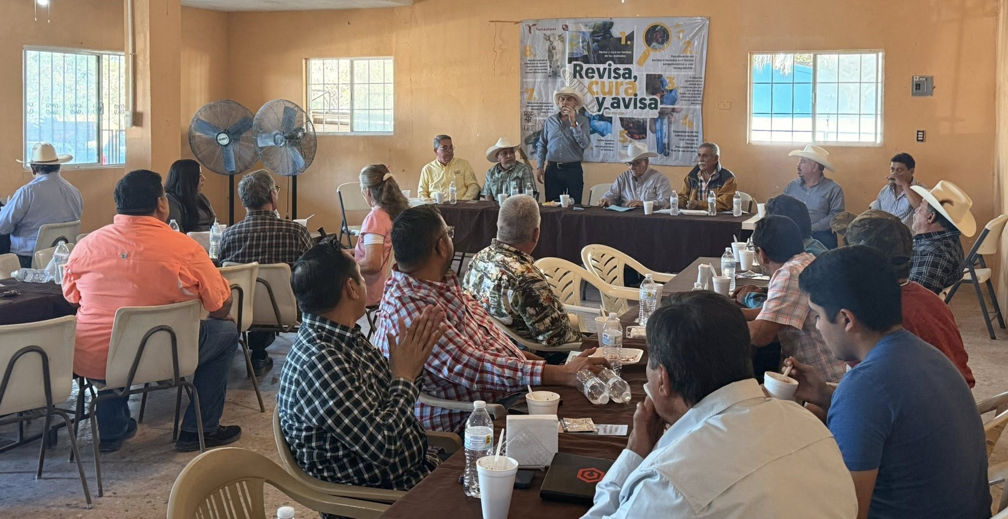 En estas mismas reuniones y en coordinación con la Secretaría de Desarrollo Rural, Pesca y Acuacultura, se llevó a cabo una capacitación para la detección, prevención y erradicación de la presencia del Gusano Barrenador del Ganado, a cargo de Médicos Veterinarios Capacitados por SENASICA – CPA, fortaleciendo las acciones sanidad animal y protección del patrimonio ganadero.