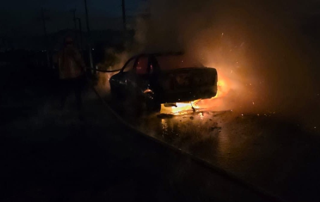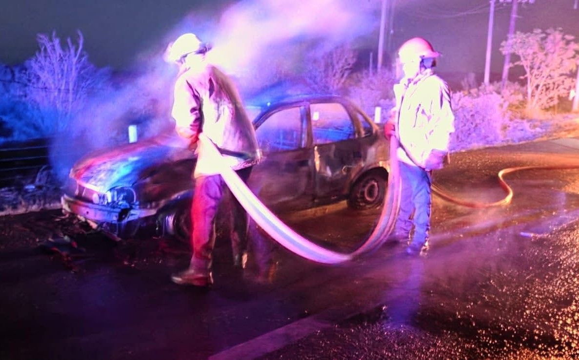 Al arribar al lugar, los elementos del Cuerpo de Bomberos encontraron un vehículo tipo Chevy envuelto en llamas, el cual fue consumido en su totalidad por el fuego.
