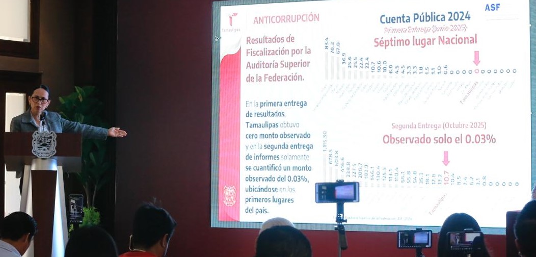 Explicó que en la primera entrega de la cuenta pública 2024, no se tuvieron montos observados, mientras que, en la segunda entrega, en octubre de 2025, el monto observado fue de 0.03 por ciento, indicadores que reflejan el manejo honesto, transparente y eficiente del manejo de los recursos públicos.