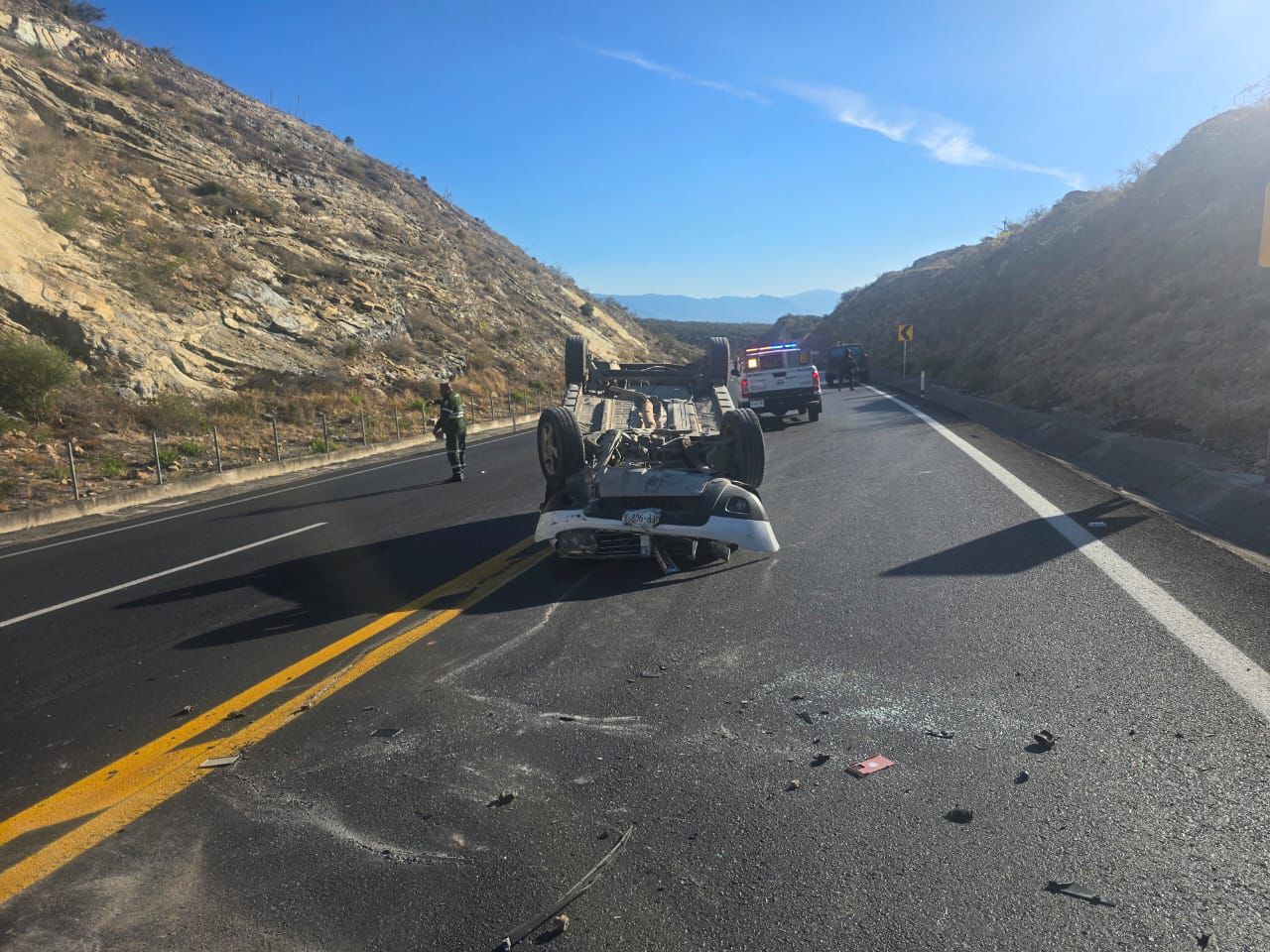 JAUMAVE, TAMAULIPAS. – La circulación vehicular se interrumpió por unas horas en ambos sentidos a la altura del kilómetro 134 de la Carretera Estatal 126 “Rumbo Nuevo” Victoria-Jaumave tras registrarse la volcadura de un vehículo particular.