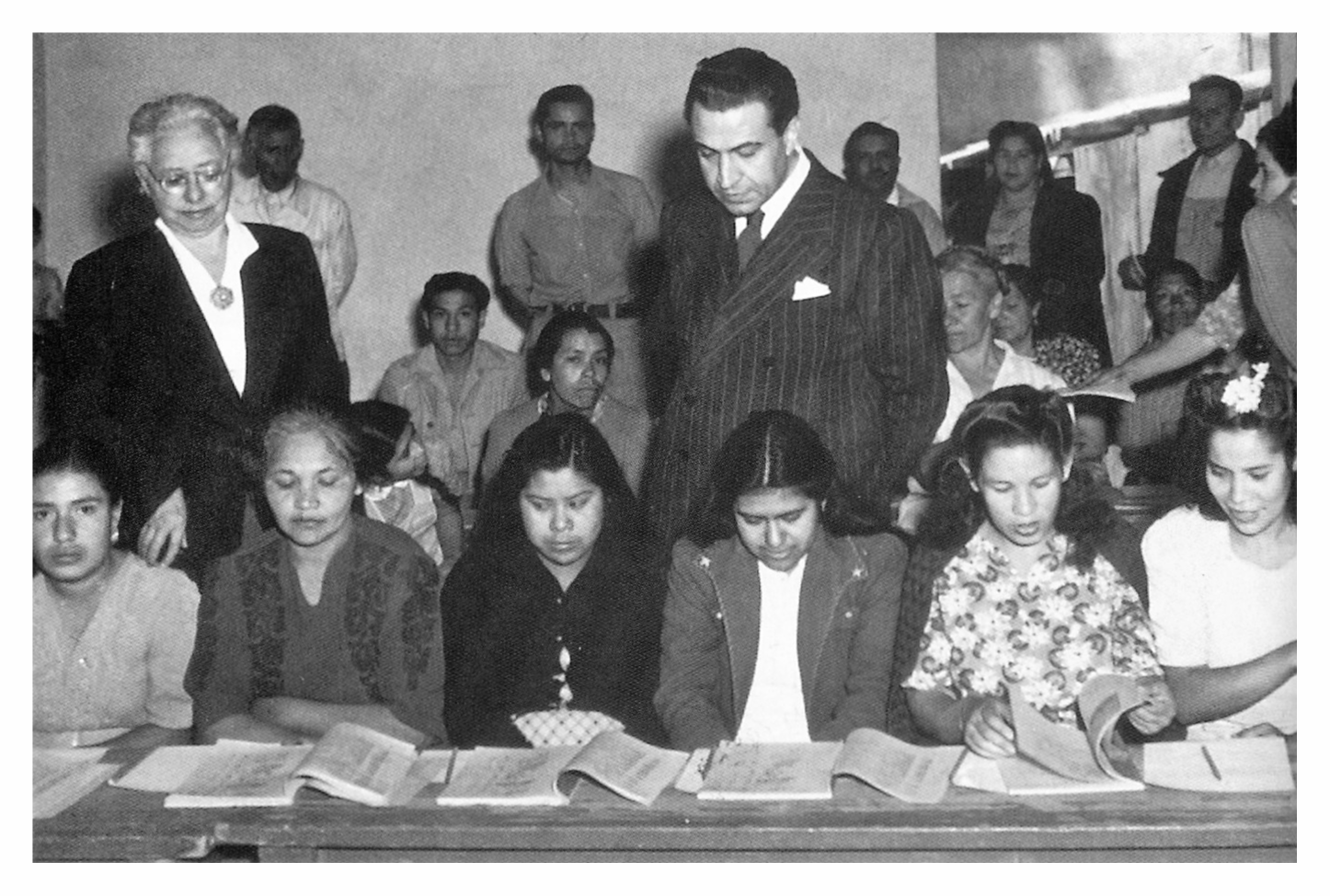 Vale decir que las asesorías para enseñar a leer y escribir, las realizaron maestras de la Escuela Juana de Asbaje y Ramírez durante horas extras, es decir fuera del horario escolar. Algunas de las heroínas de la pedagogía, quienes se desempeñaron a finales de la Segunda Guerra Mundial fueron las maestras María de Alba González -Directora hasta 1944- Guadalupe Jiménez de la Garza C., Beatriz Jiménez Ruiz, Soledad Guerra García, Ramona Hernández Cuesta, Alejandrina Terán y Carmen Olvera Morales.