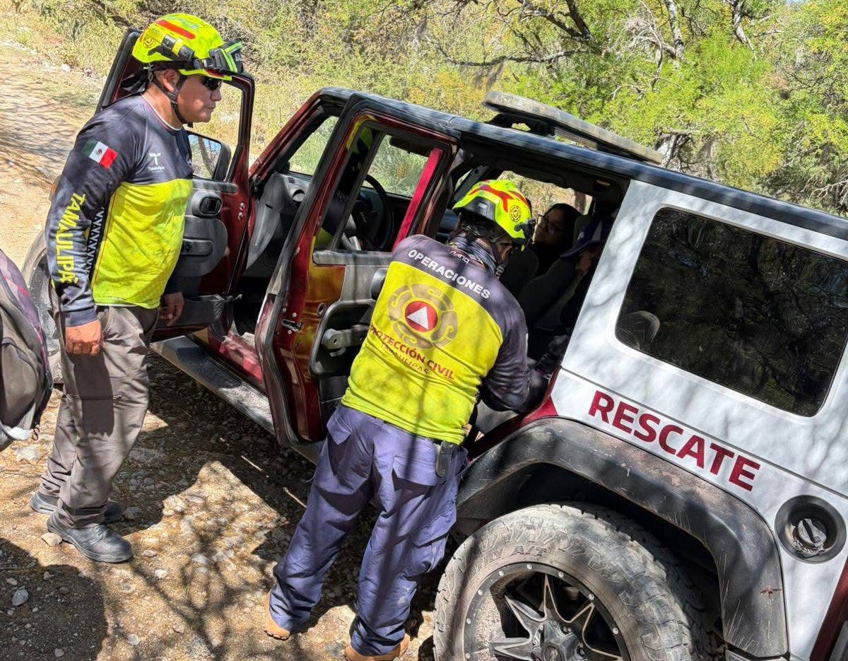 Elementos operativos de Protección Civil Tamaulipas brindaron atención a dos personas que realizaban senderismo en un camino de terracería cercano a la carretera Rumbo Nuevo.