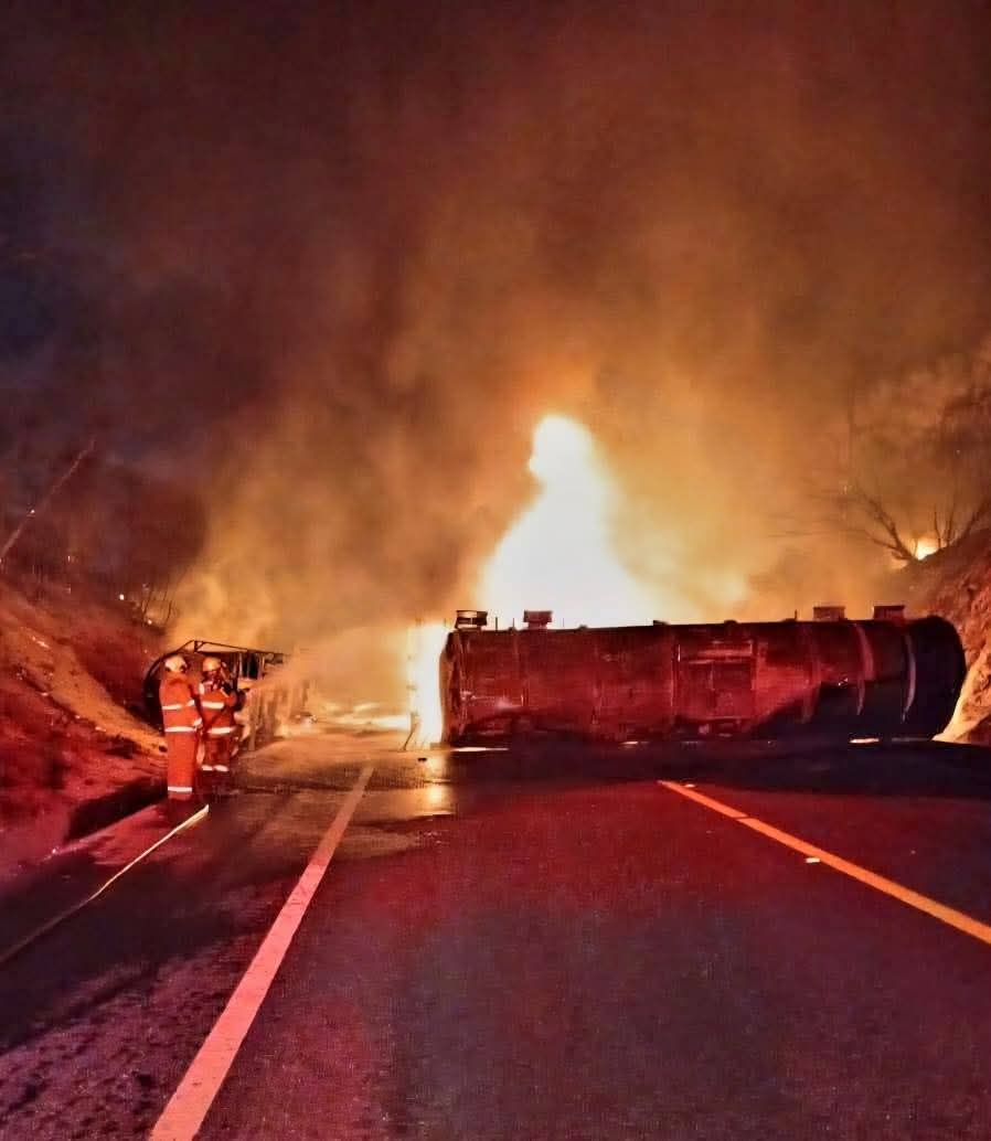 Debido a la naturaleza de la carga —una de las unidades transportaba gasolina y la otra químicos para lubricantes—, las llamas se propagaron rápidamente, lo que requirió la intervención inmediata de elementos de Protección Civil y diversos cuerpos de bomberos.