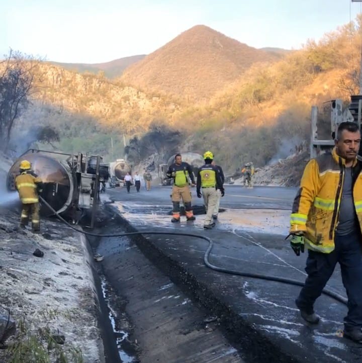 Ciudad Victoria, Tamaulipas (24 de marzo de 2026).- Un fuerte percance vial ocurrido durante las primeras horas de este martes mantiene interrumpida la circulación en la carretera Rumbo Nuevo. El incidente, registrado específicamente en el kilómetro 9, involucró el choque, volcadura e incendio de dos unidades de carga que transportaban materiales de alta peligrosidad.
