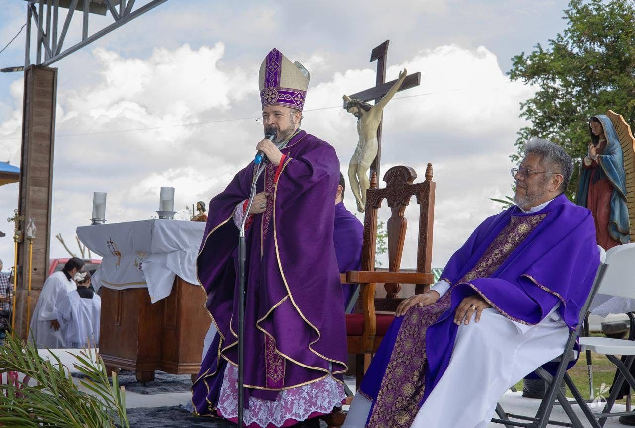 Cientos de productores agrícolas y sus familias de varias comunidades de Valle Hermoso, Río Bravo, Matamoros y San Fernando se dieron cita para participar en la celebración litúrgica en el marco de las jornadas católicas de la semana santa 2026.