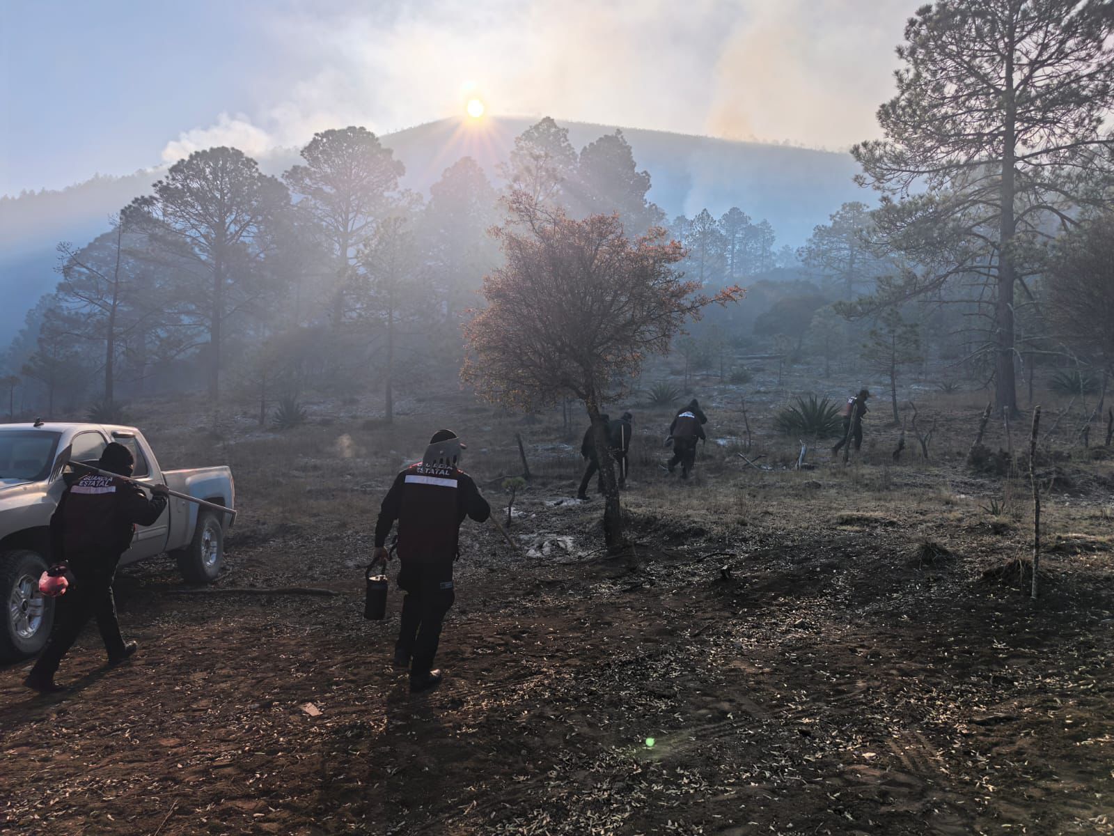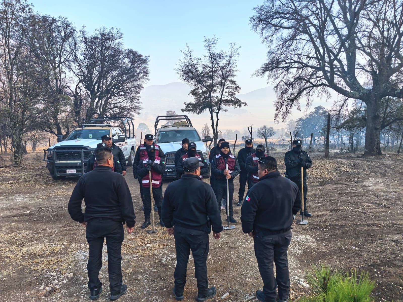 Al llegar al área afectada, los elementos policiales se integraron a las labores de control que ya realizaban las brigadas operativas de la Secretaría de Desarrollo Rural y de la Secretaría de Desarrollo Urbano y Medio Ambiente (SEDUMA).