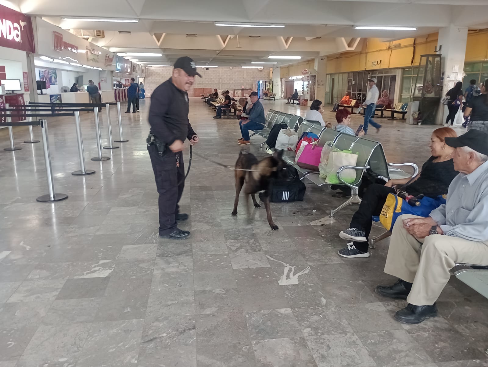 El despliegue fue encabezado por el canino Ares, entrenado específicamente para la localización de narcóticos. Durante la jornada, se realizó un barrido preventivo en diversas áreas estratégicas de la terminal, incluyendo pasillos, salas de espera, andenes y el interior de las unidades de transporte.