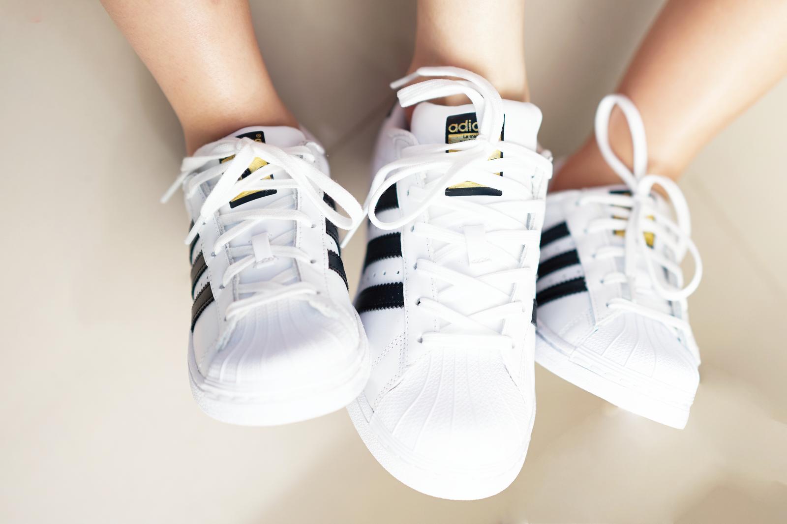 Bangkok ,Thailand,July 18 ,2018-Three white sneaker shoes brand Adidas