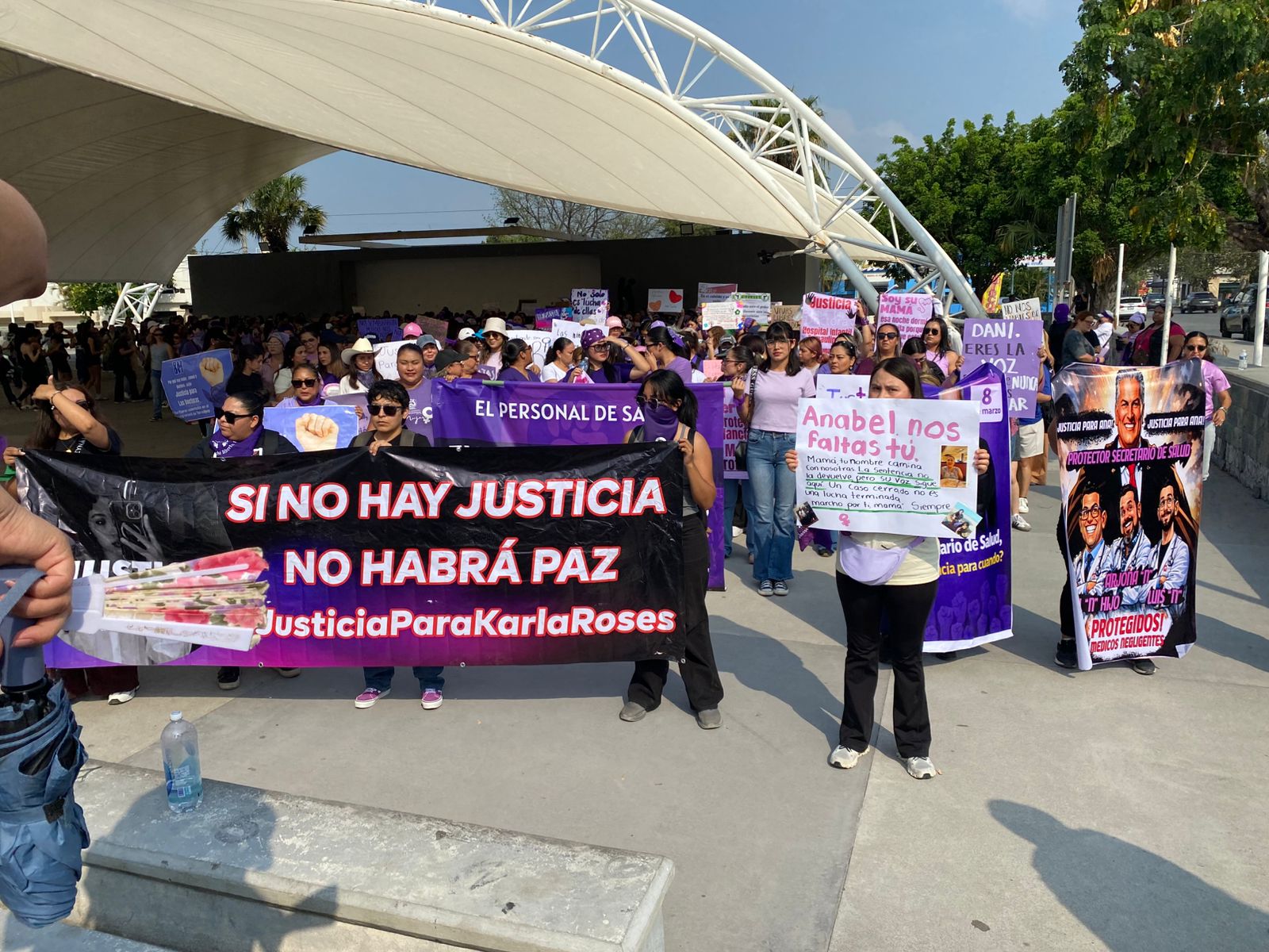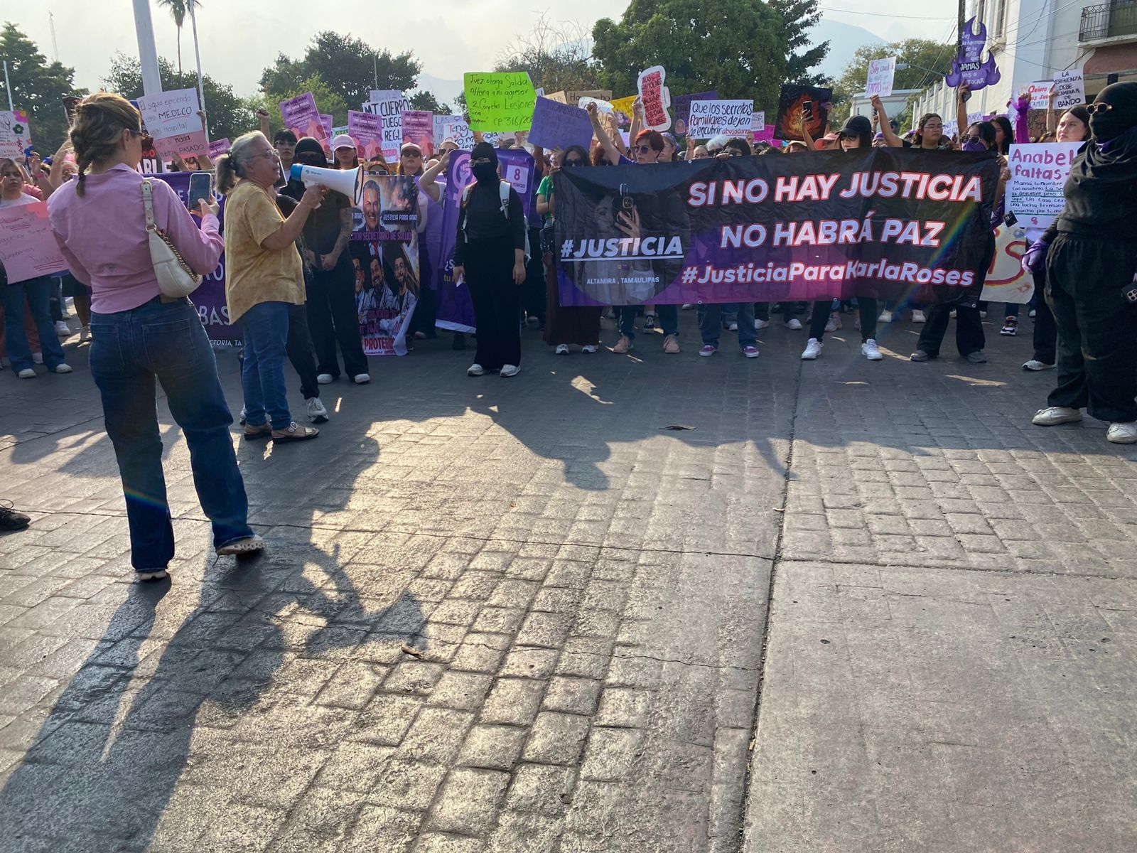 Después de su exigencia de justicia, se dio inicio a la marcha que recorrió la calle 17, integrada por madres buscadoras, familiares, amigos y víctimas de violencia, mujeres con discapacidad, madres de familia acompañadas de sus hijas e hijos menores de edad y mujeres integrantes del Colectivo Feminista Radical Aquelarre.