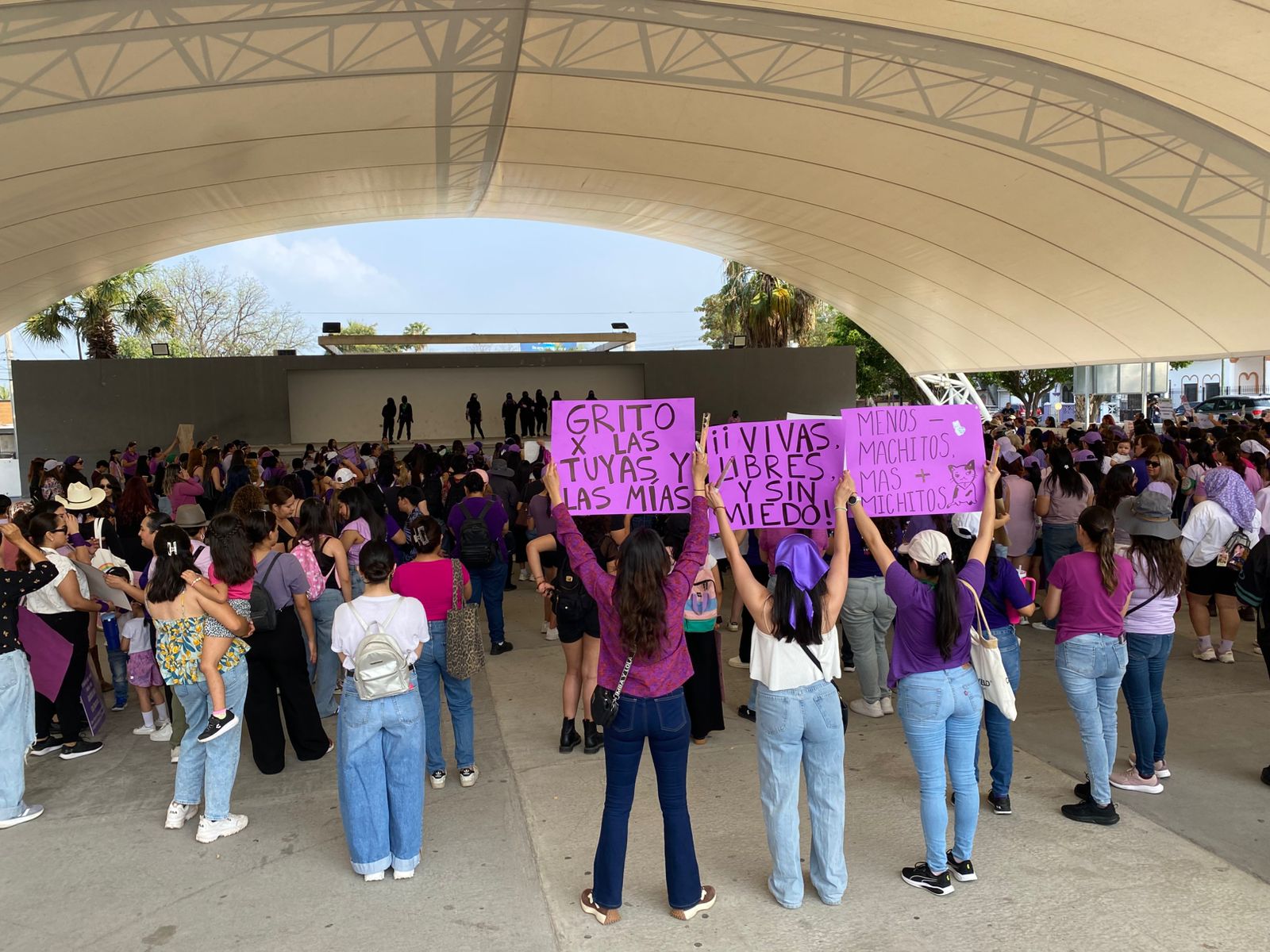 Ciudad Victoria, Tamaulipas (8 de marzo de 2026).- Esta tarde Ciudad Victoria se sumó al Día Internacional de la Mujer con una marcha de alrededor de 500 mujeres que recorrieron la zona centro de esta Capital y culminó con un evento en la Concha Acústica del Paseo Méndez.