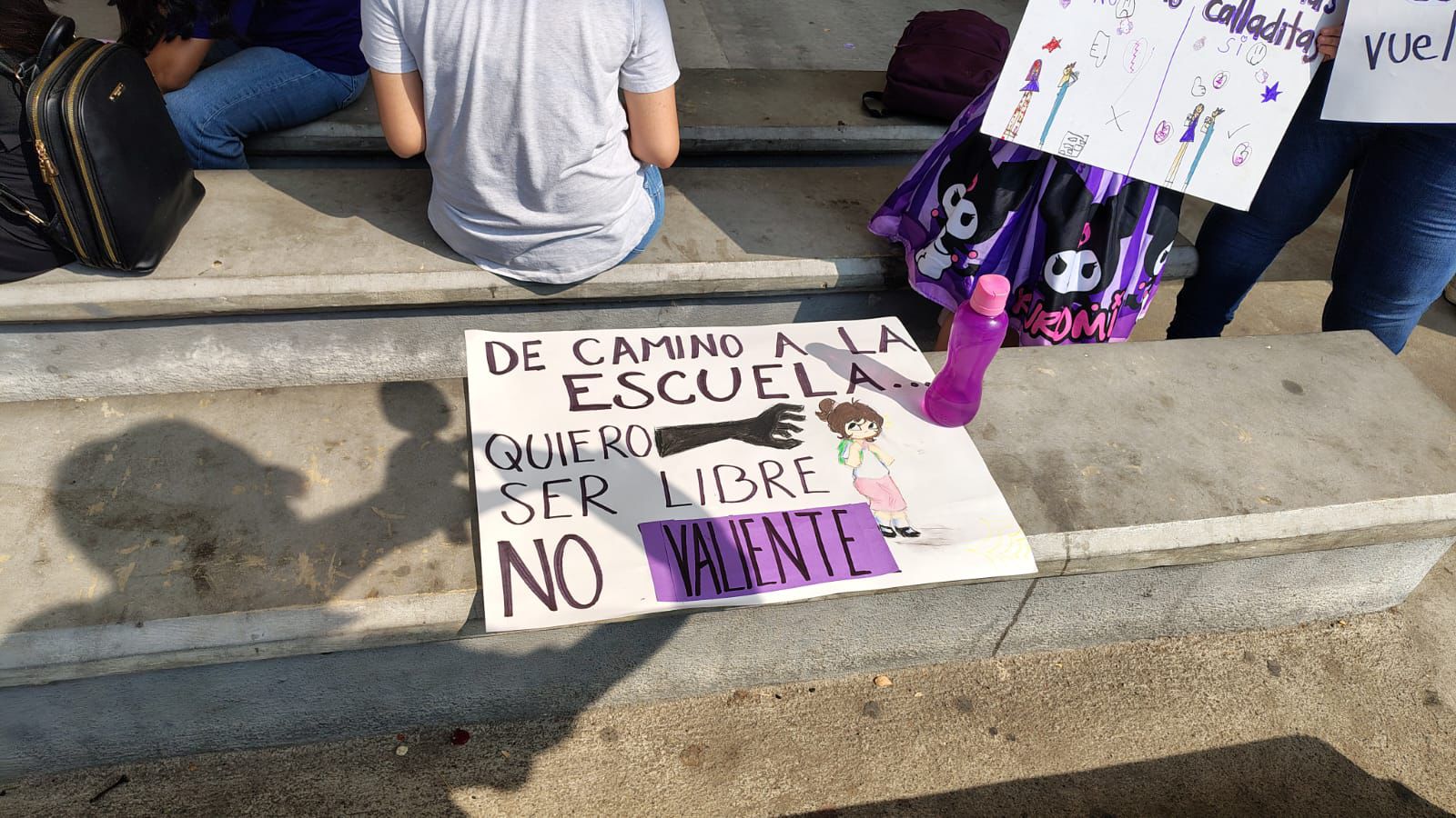 Posteriormente grafitearon el Monumento a Los Niños Héroes y también colocaron un “tendedero” donde con algunos letreros exhiben a presuntos acosadores y/o agresores.
