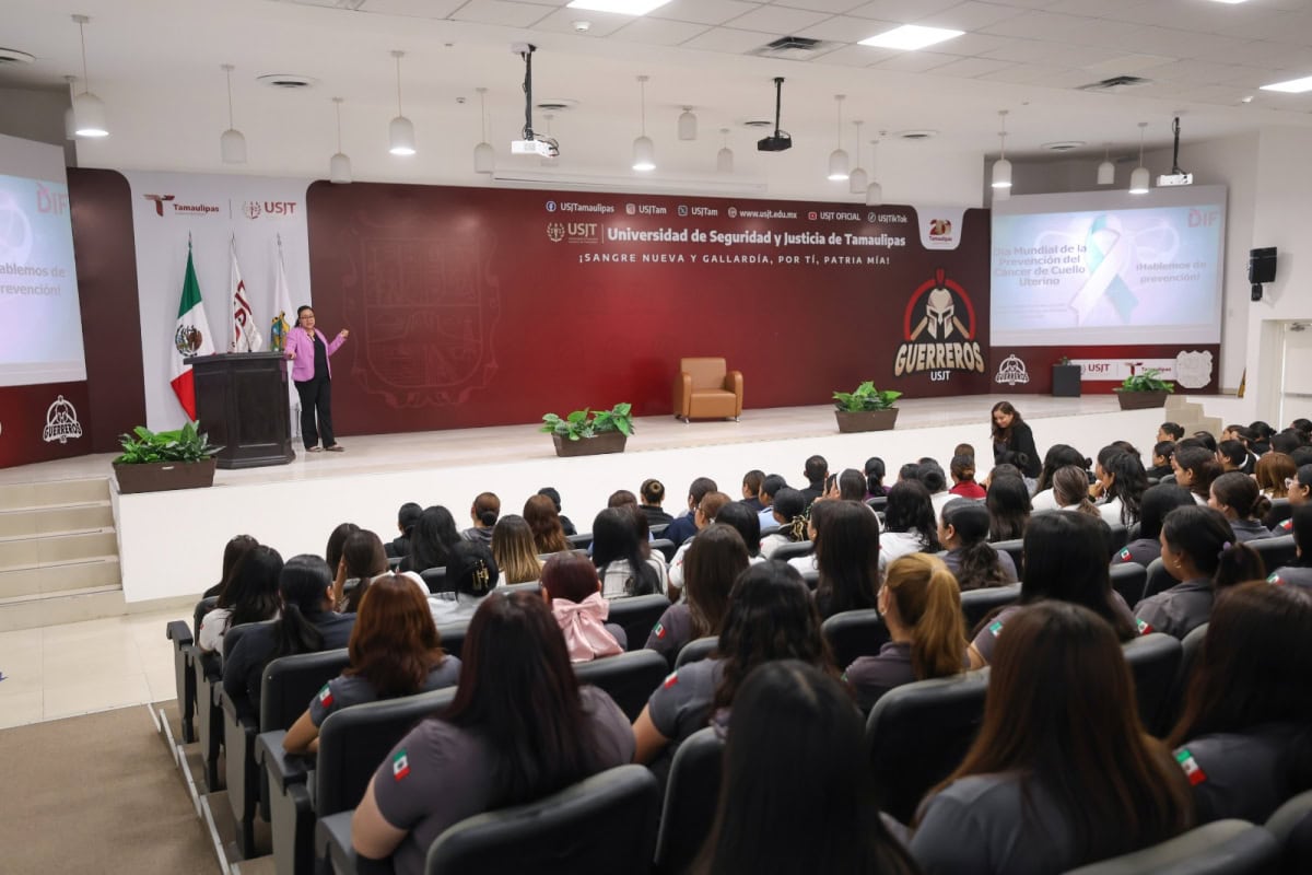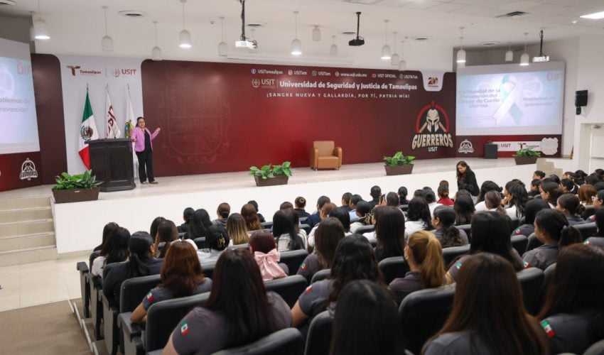 En coordinación con la Universidad de Seguridad y Justicia de Tamaulipas, se llevó a cabo la conferencia “Hablemos de Prevención”, acompañada de la instalación de una unidad móvil en la que se realizaron estudios de citología cervical y detección de VPH a mujeres de 30 años en adelante.