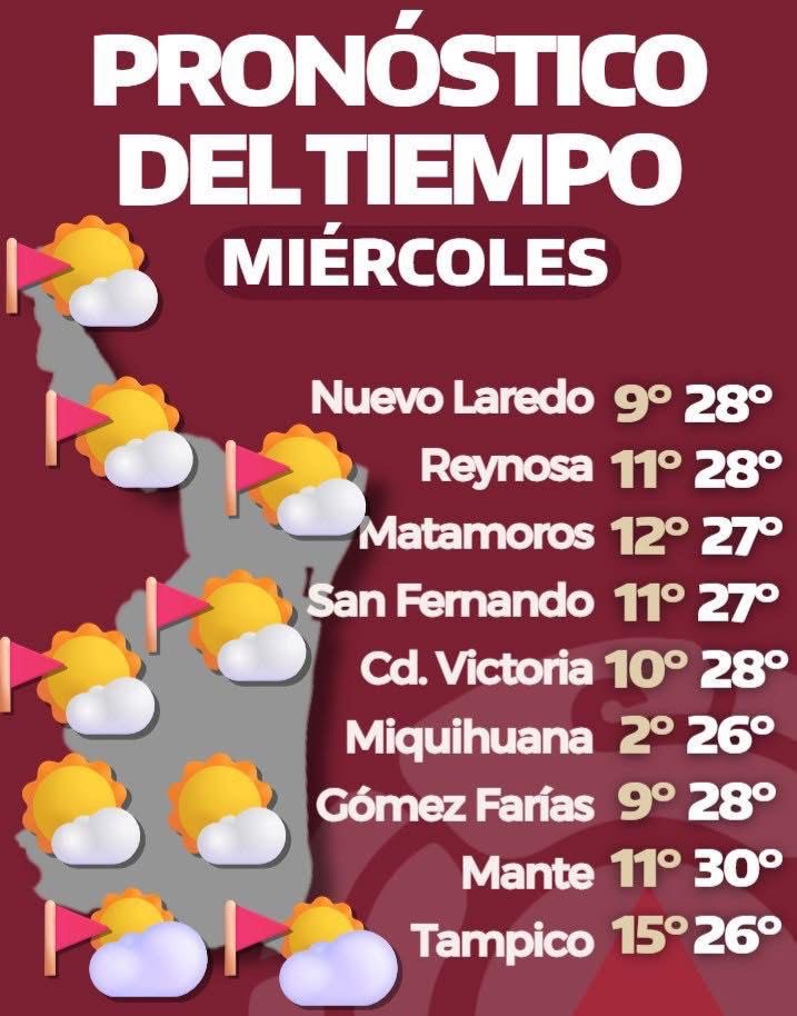 Ciudad Victoria, Tamaulipas (18 de marzo de 2026).- Las condiciones meteorológicas en Tamaulipas experimentarán una transición significativa durante las próximas horas. De acuerdo con el reporte oficial de Protección Civil Tamaulipas, se espera que el ambiente moderadamente frío percibido al amanecer de este miércoles sea desplazado rápidamente por un aumento en las temperaturas, consolidando una tarde de calor en la mayor parte del estado.