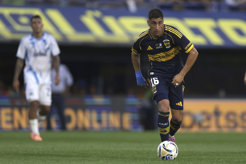 AMDEP385. BUENOS AIRES (ARGENTINA), 14/01/2026.- Miguel Merentiel de Boca controla un balón este miércoles, en un partido amistoso en homenaje al fallecido entrenador Miguel Ángel Russo entre Boca Juniors y Millonarios, en el estadio La Bombonera, en Buenos Aires (Argentina). EFE/ Adán González