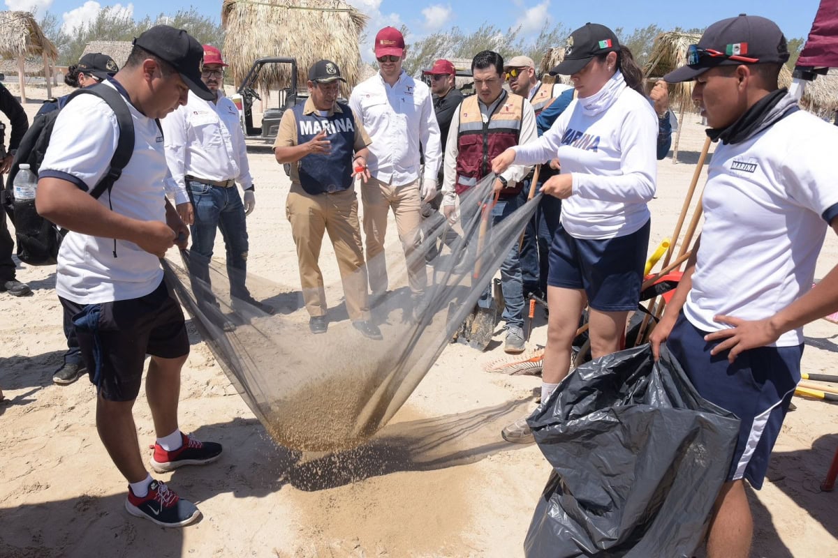 Las labores se realizan de manera coordinada con brigadas de Empleo Temporal de la SEDUMA, integradas por habitantes de La Pesca capacitados por la Procuraduría Federal de Protección al Ambiente (PROFEPA) en el manejo de residuos de hidrocarburo. A estas acciones se suman personal de la Secretaría de Bienestar y elementos de la Secretaría de Marina, quienes llevaron a cabo un barrido manual, para retirar el material detectado.